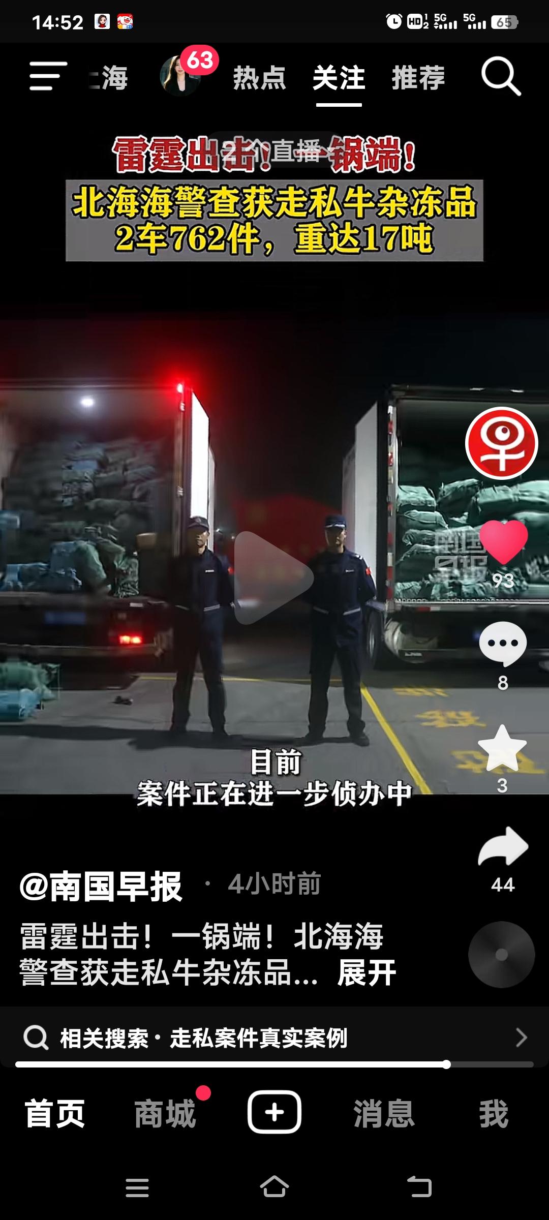 北海海警太牛啦,雷霆出击那叫一个飒!3月1日凌晨,北海海警局联合公安部门在北海港某码头破获一起走私冻品案。 他们构建“海陆合围”态势,陆地执勤组拦截车辆、控制嫌疑人,执法艇查扣摩托艇,查获约17吨来源不明、未检验检疫的牛杂制品,隐患极大。 还有之前北海海警局破获的走私鲜活龙虾案也超精彩。执法时两名嫌疑人竟主动现身,想用15万“赎回”货物,结果被当场控制。海警们真是火眼金睛,让走私分子无处遁形,必须点赞! 海警出海 海警新动作 海警巡航护疆土
