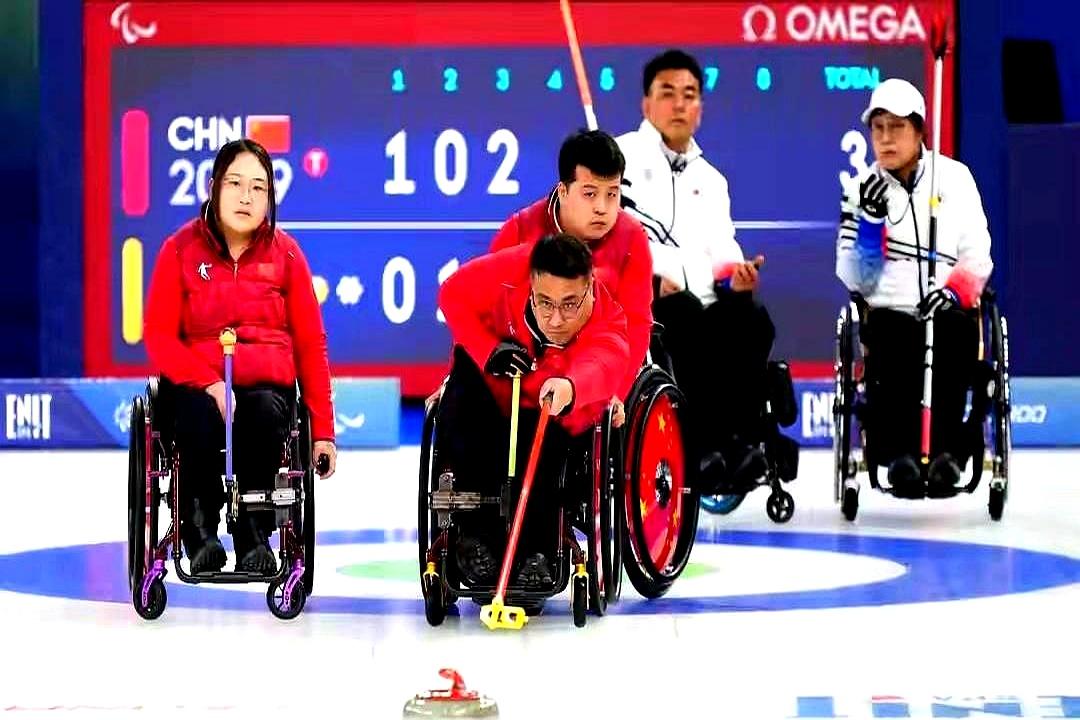 加赛局韩国队最后一投滑出赛道,中国轮椅冰壶队把历史首金攥得死死的。 这个混合双人项目今年第一次进冬残奥,王蒙杨金桥组合一路6胜1负杀进决赛,前六局还7比3领先,被韩国连追4分扳平也没慌,加赛稳稳拿2分,9比7直接拿下,这是中国代表团本届第10金。 另一边混合团体赛也猛,先后干翻美国意大利韩国,豪取三连胜稳坐积分榜头名,已经闯进半决赛,照着卫冕的路数冲。 哪有什么天降好运,全是平时一投一投磨的硬实力;哪有什么临场爆发,全是赛时一分一分拼的真底气。