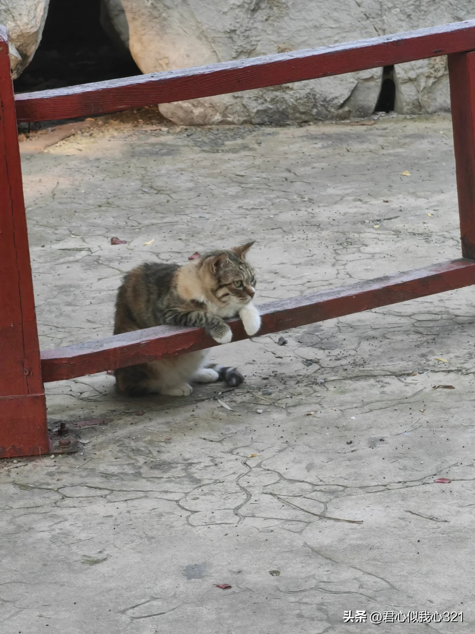 清晨趴在栏杆上翘首企盼喂猫人的猫猫好可爱!