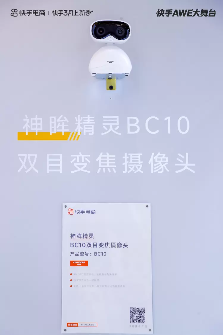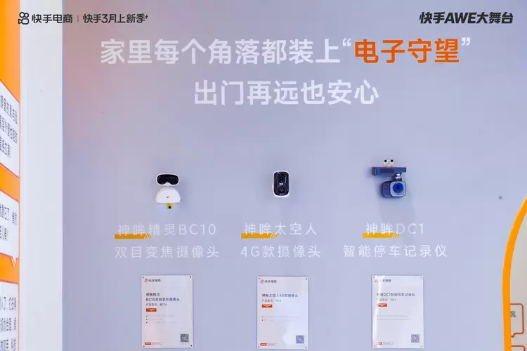 在众多品牌中,智能安防领域新锐神眸携手快手电商惊艳亮相,以"家里每个角落都装上'电子守望',出门再远也安心"为核心主张,重磅发布全新BC10双目变焦摄像头,并同步展出BC44G摄像头与DC1智能停车记录仪,三款产品联袂出击,共同构筑覆盖室内、室外、车载的全场景智能守望体系。