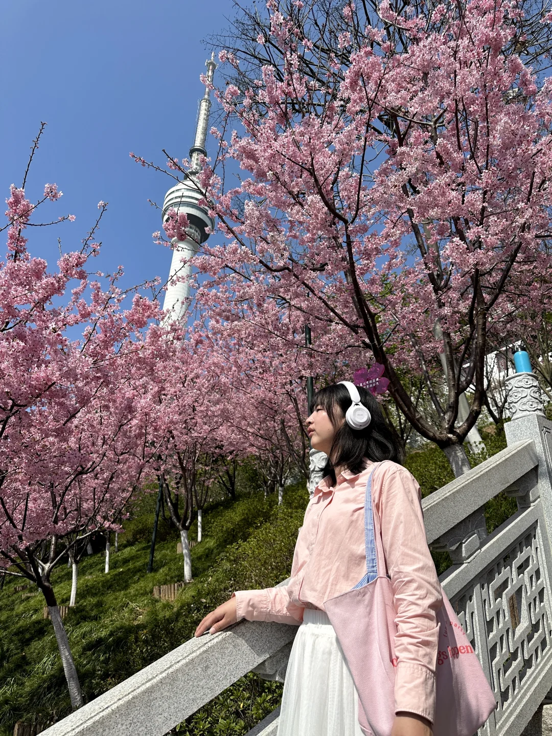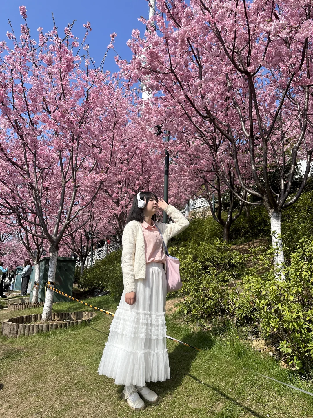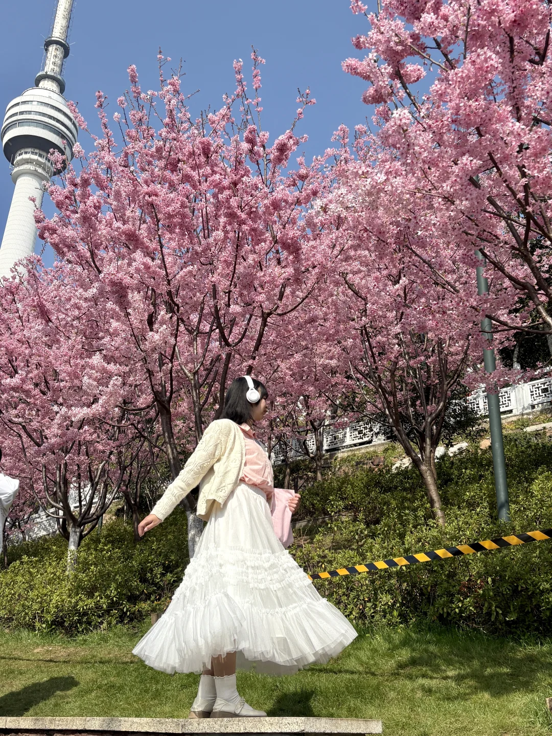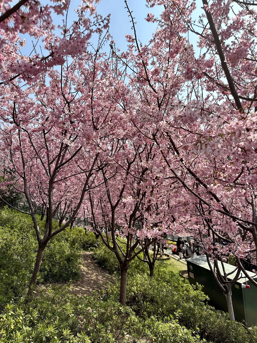 晴天和粉色早樱也太搭了,有很多拍照机位,可以交换你们拍到的花花吗 📍龟山公园东门
