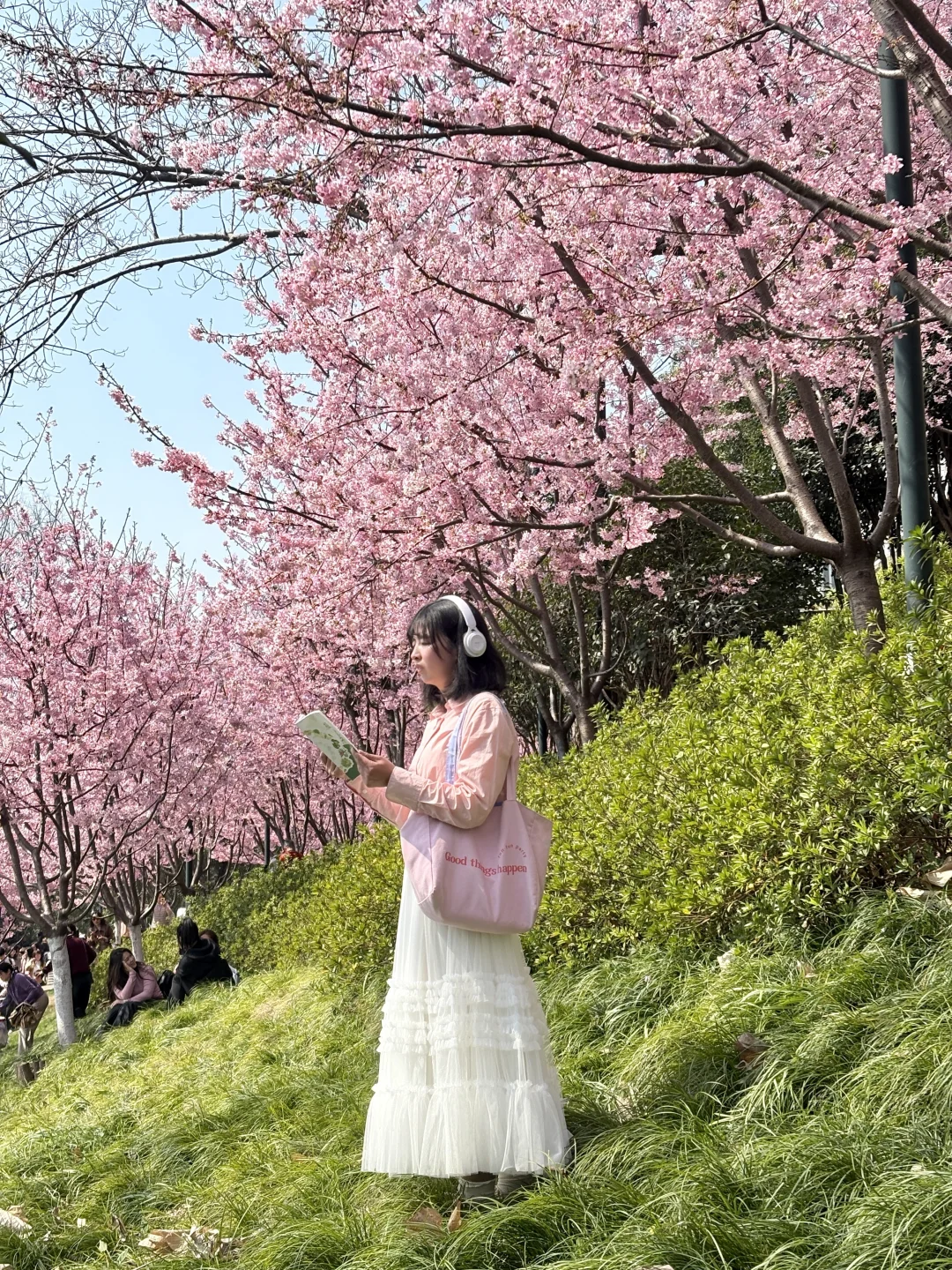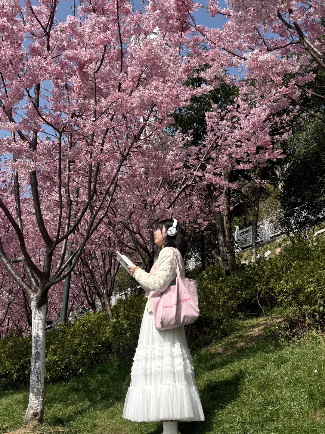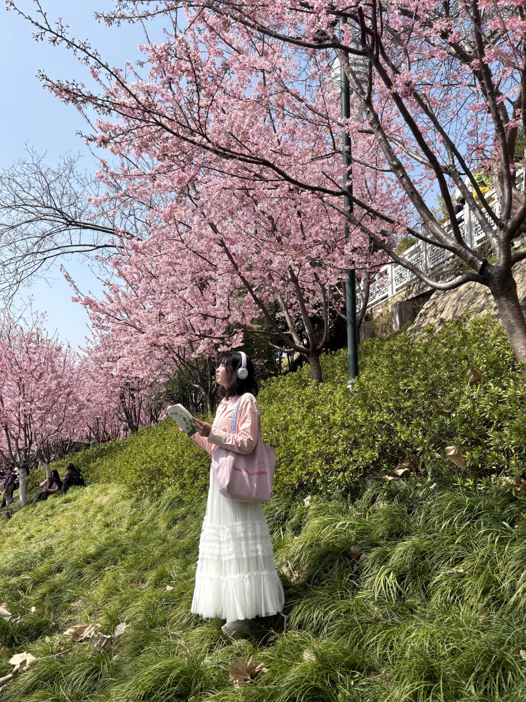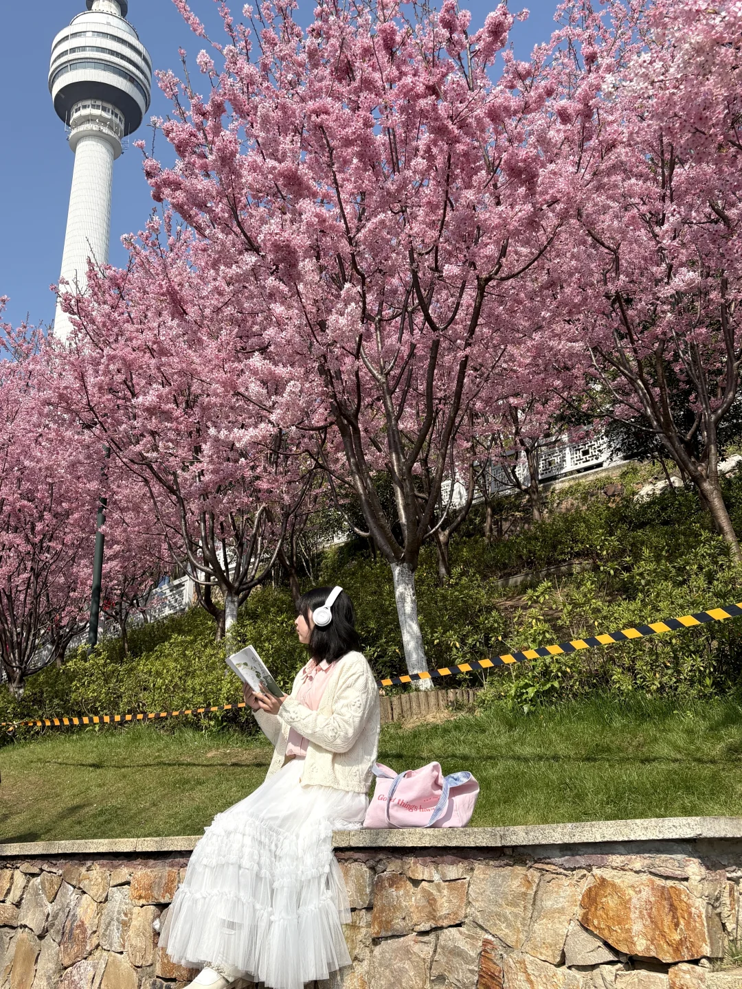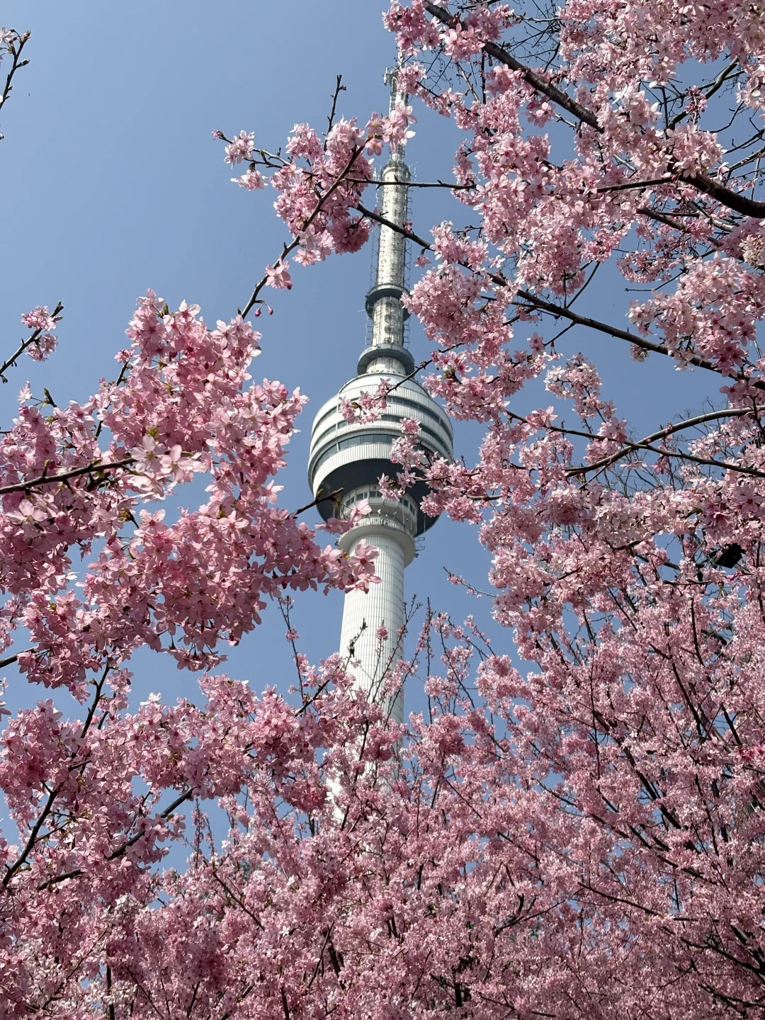 晴天和粉色早樱也太搭了,有很多拍照机位,可以交换你们拍到的花花吗 📍龟山公园东门