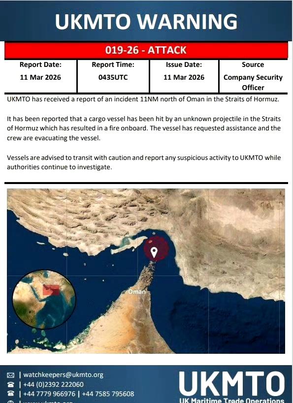 英国海事贸易组织报告了两起新的袭击事件,一起发生在波斯湾,另一起发生在霍尔木兹海