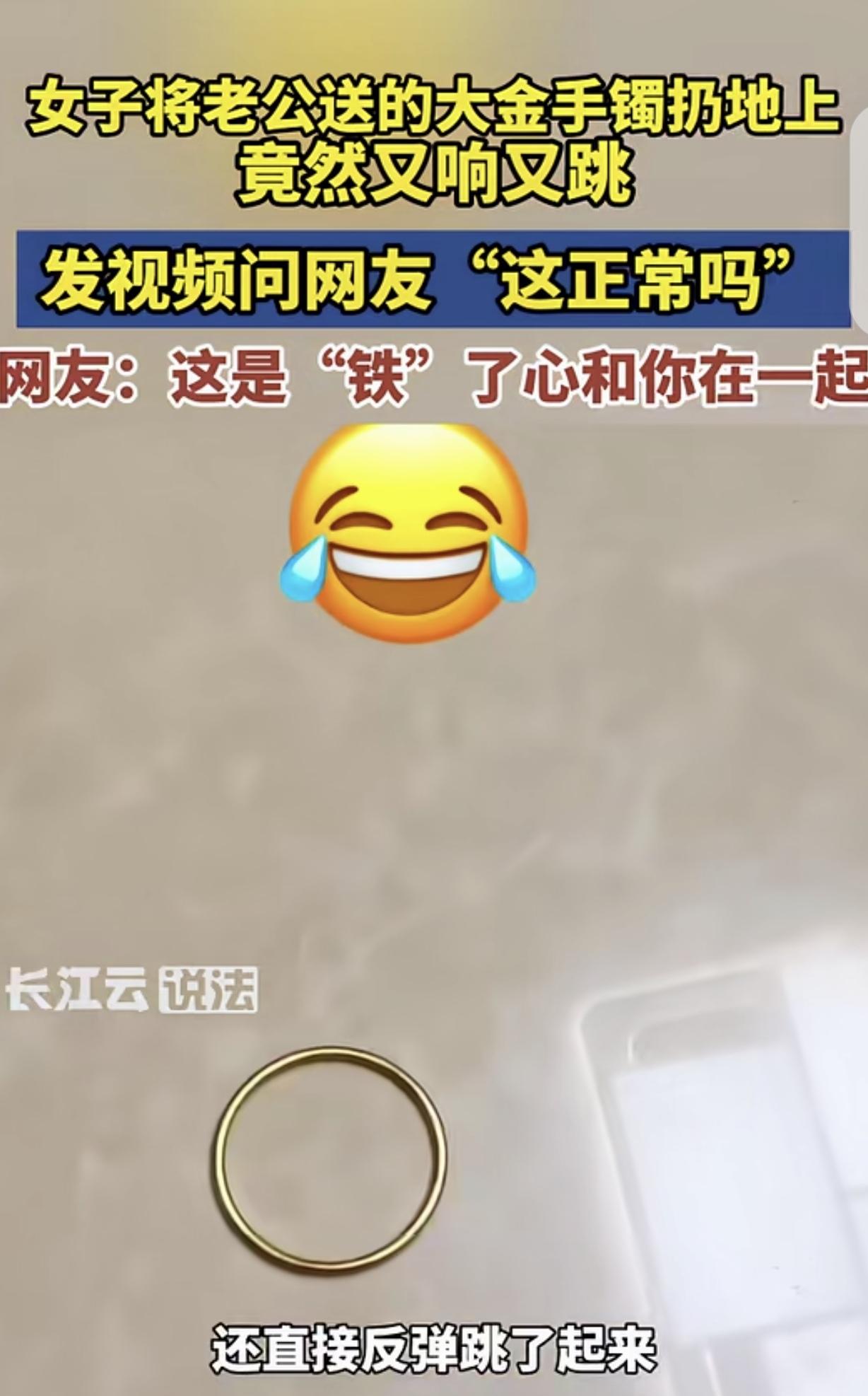 “露馅了!”浙江,一女子3.8节收到老公送的大金手镯,她随手把手镯扔地上测试真假,不料,手镯落地时,不仅声音清脆,还弹跳起来,女子顿时蒙圈,俗话说金不响银不跳,而她的手镯又响又跳,这是个什么东西?她怀疑老公拿假手镯忽悠自己。网友。这是“铁了心”要和你在一起呀! 这个2026年的春天,温州的社交圈被一只“会跳舞”的手镯刷了屏。 如果黄金能开口说话,它在3月落地的那一瞬间,声音大概不是“当啷”,而是某种信任崩塌的碎裂声。 事情就发生在前几天,那只金灿灿、沉甸甸的宽版镯子,在温州一位女子的地板上划出了一道诡异的弧线。 原本这该是个教科书式的温情故事:丈夫一脸深情地递上礼盒,说着感谢家庭付出的感言,仪式感拉到了最满。 女子打开盒子的一刻,心里确实是甜的。这只镯子看着大气、时尚,怎么瞧都像是价值几万元的阔绰手笔。 可这种“受宠若惊”只维持了短短几秒。因为在她眼里,丈夫平时的消费习惯一直跟“豪横”二字不沾边。 过于反常的慷慨,往往会催生出一种本能的防备。女子脑子里突然蹦出了那句老话:金不响,银不跳。 在民间经验的简陋模型里,足金是延展性极佳的软金属,落地应如泥牛入海,发出的该是沉闷如土的声音。 为了求证这枚“黄金梦”的成色,她没有温存,直接顺手把手镯往地板上一掷。 接下来的画面让空气瞬间凝固:手镯落地不但清脆响亮,还像开了路子的小皮球一样,高高弹了起来。 这一弹,把妻子的感动彻底弹飞了。她盯着那个旋转跳跃的金色圆环,半天没回过神——这哪是黄金,这简直是颗弹力球。 消息传到网上,网友们倒是深谙解构主义的幽默。有人打趣说,这分明是“铁了心”要跟你过一辈子。 更有看热闹不嫌事大的,建议把镯子丢进水桶,看看它会不会因为“浮力定律”在水面撑起一叶扁舟。 这场由抛掷引发的信任危机,在丈夫掏出票据的那一刻,终于迎来了某种略显尴尬的对齐。 手镯不是假的,但也确实不是足金,而是这两年风头正盛的“越南沙金”,也就是合金镀金。 丈夫的理由很硬气:足金太软,稍微磕碰就变形,丢了也心疼。买这个是为了实惠耐用,佩戴起来还没负担。 这种“实用主义”的辩白,在温情的节日背景下,显得既现实又有些苍凉。它是省钱的借口,还是务实的关怀? 对于这位女子来说,那种从“收到数万重礼”跌落到“收获合金镀金”的心理落差,恐怕比镯子的弹跳高度还要高。 这种情感里的“防腐剂”和“代糖”,虽然口感接近,但内核却有着云泥之别。 即便是在法律层面上,这种赠与也处在一种微妙的灰色地带。 按照我们现在的《民法典》第662条,赠与物有瑕疵,一般情况下赠与人是不担责的,除非他明知有假却故意当真金卖。 如果丈夫明知道是沙金却包装成足金去哄骗,妻子理论上是可以主张撤销这份“爱”的礼物的。 好在,温州的这位丈夫拿出了票据,把“欺诈”变成了“认知差异”,把矛盾引向了工艺科普。 这桩小事映射出一个很有意思的社交真相:在2026年的今天,再高超的电镀工艺,也模拟不出纯金那份迟钝的笨拙。 真正的仪式感,有时候恰恰藏在那些“不响、不跳、易变形”的柔软品质里,因为它容不下半点弹跳。 如果连送出的浪漫都得提前算计好“抗压”与“折损率”,那这份感情的弹性,恐怕也和那只沙金镯子一样,响亮得有些刺耳了。 参考信息:女子收到老公送的金镯子,丢地上又响又跳,网友:铁做的?2026-03-12 08:43·光明网