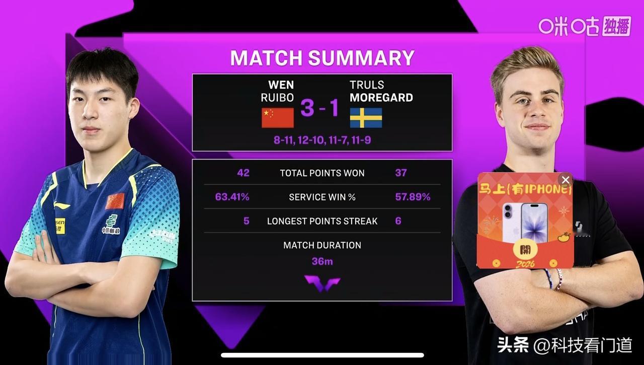 国乒小将 温瑞博 3:1力克世界排名第二的瑞典名将莫雷加德 ,打出了气势,甚至把小莫打炸毛了[笑哭][捂脸] 总体而言,温瑞博打出了自己防守好,进攻犀利的特点,在第一局明显不适应小莫发球和反手弹击的打法之后,能够迅速调整,连扳三局,实现逆转,体现出小温非常好的比赛气质! 应该说,最近半年温瑞博的成长非常快!在接连战胜巴西世界冠军雨果,奥运冠军大满贯樊振东之后,今天战胜了世锦赛和奥运会双料副冠军莫雷加德,展现出极强的竞争力! 此外值得一提的是,樊振东在德甲萨尔布吕肯俱乐部的队友达科是温瑞博战胜的第一位世排前十选手,而俱乐部队长弗朗西斯卡,欧冠队友莫雷加德,甚至包括奥运冠军樊振东本人,都曾被温瑞博挑落马下,而且下赛季新加盟俱乐部的雨果同样。可以说温瑞博真的与萨尔布吕肯俱乐部有不解之缘[呲牙][笑哭][捂脸] 当然,小温还有很多不足之处,现在也是初出茅庐,很多人对他并不熟悉,等大家重视他之后,未来也很有可能遇到跟林诗栋一样的上升瓶颈。不过无论如何,小温技术全面和强大的比赛气质,会帮助他走得更远! 加油💪小温!