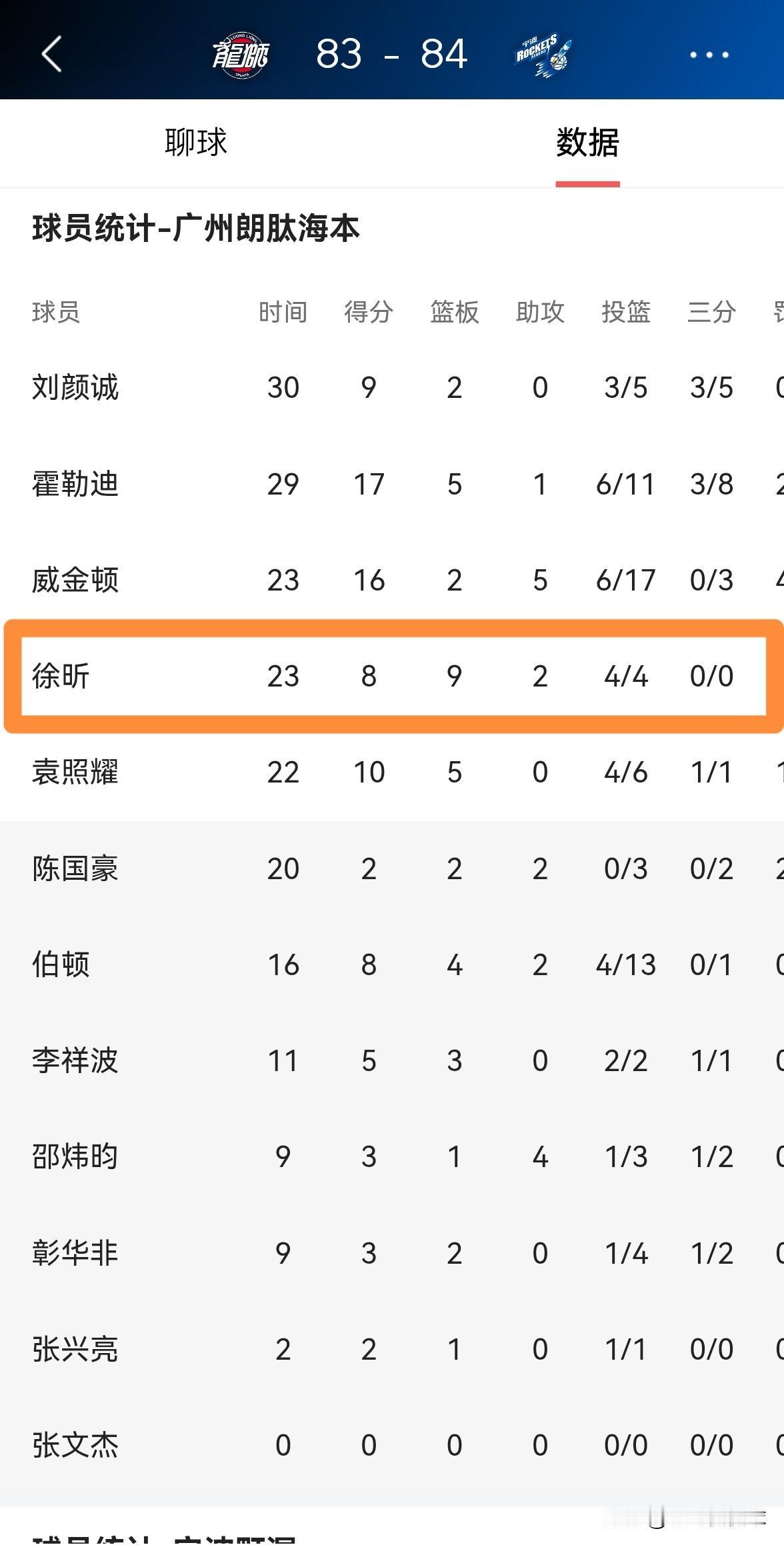 广州朗肽海本新星徐昕的进攻戏份真是太少了!在今天广州朗肽海本主场以83:84惜败于宁波町渥的比赛中,徐昕在进攻状态非常火热的情况下仅仅得到了4次出手机会,作为一名全明星中锋,徐昕的进攻戏份实在是少的可怜。 全场比赛下来,徐昕首发出战23分钟,投篮4中4得到8分9篮板2助攻2盖帽。 实事求是的说,如果本场比赛徐昕能够得到更多的出手机会,那么广州朗肽海本怎么会输球呢?