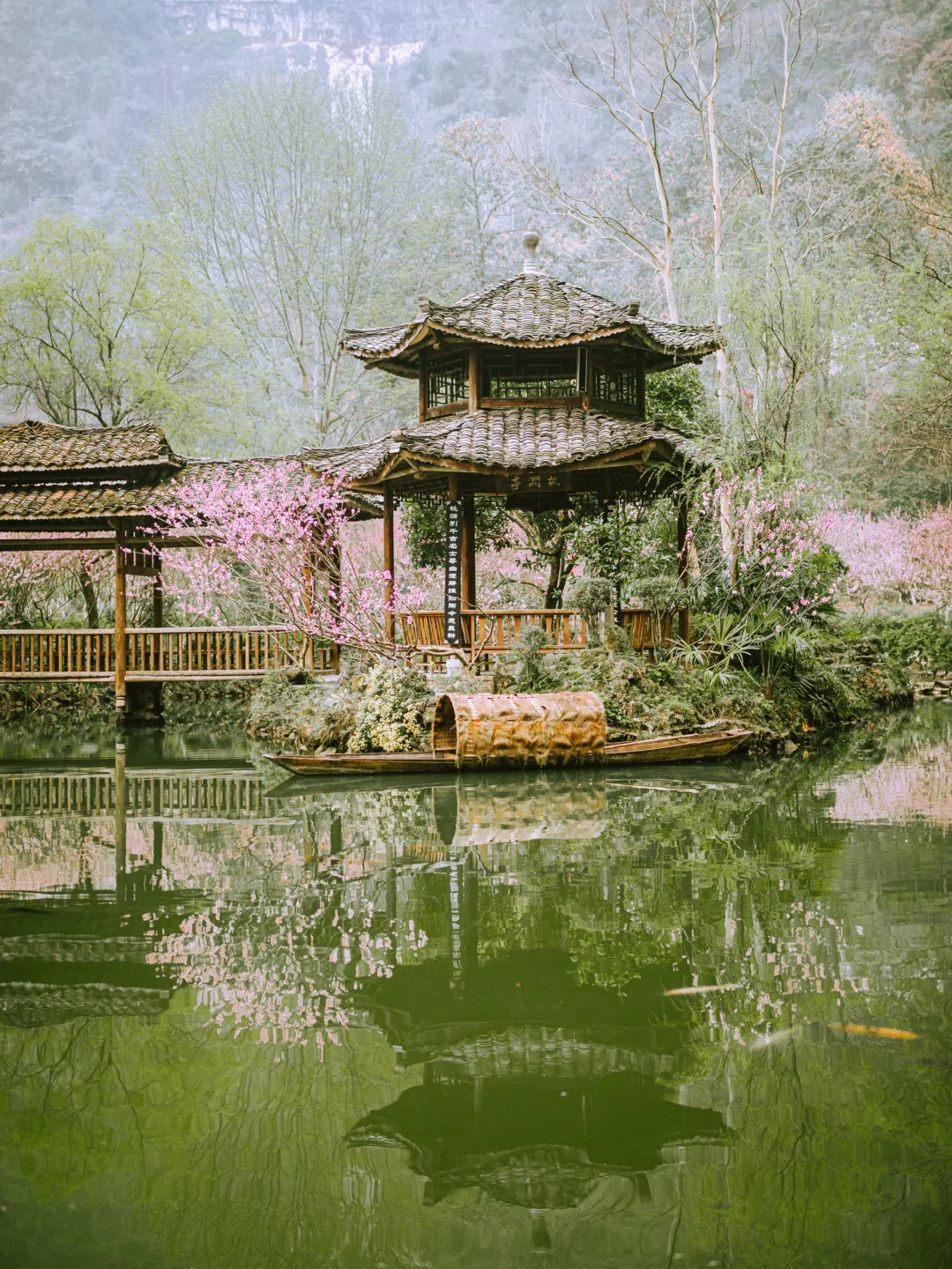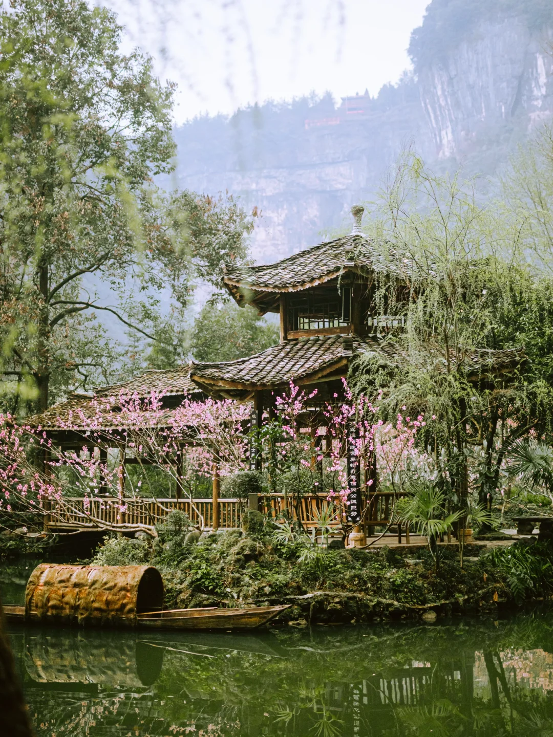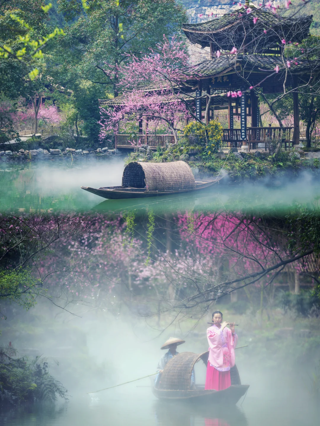 陶渊明笔下世外桃源的原型地,清潭碧水,十里桃花,只一眼,便决定了我今年春天追🌸的第一个目的地——酉阳!