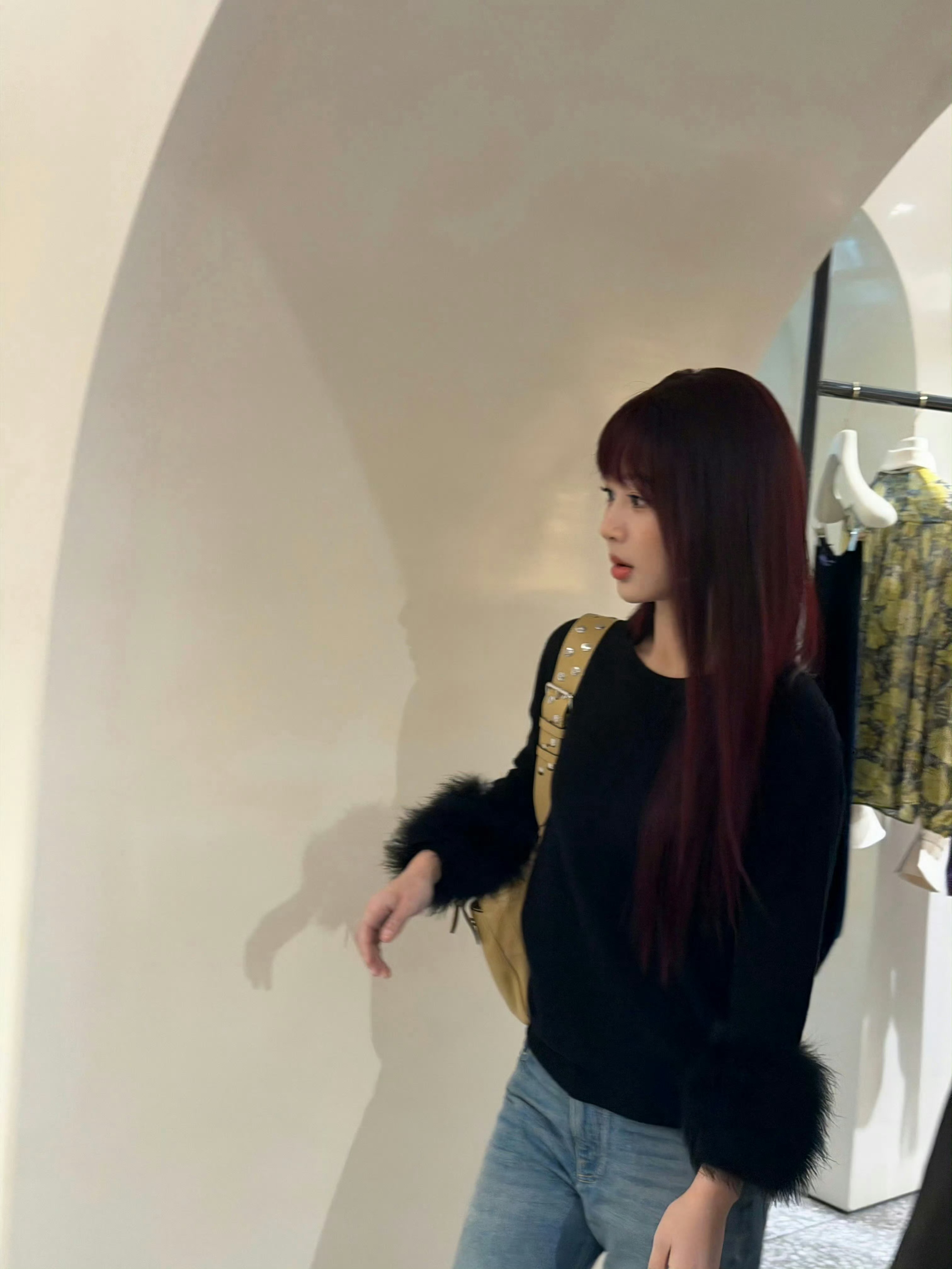 杨紫红发造型华伦天奴探店,满满的高级感!!