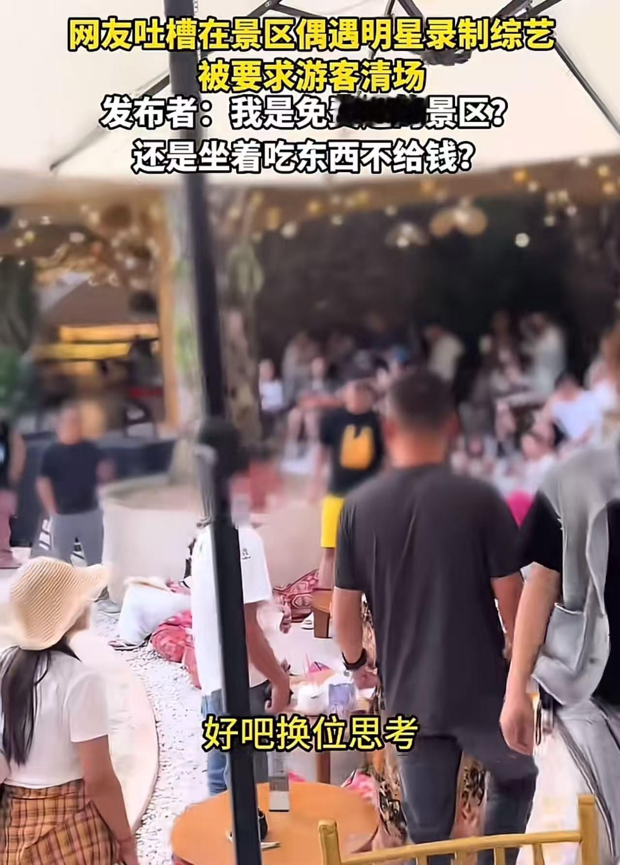 男子吐槽在景区偶遇明星录制综艺,被要求游客清场。发布者:“明星了不起啊?我是免费