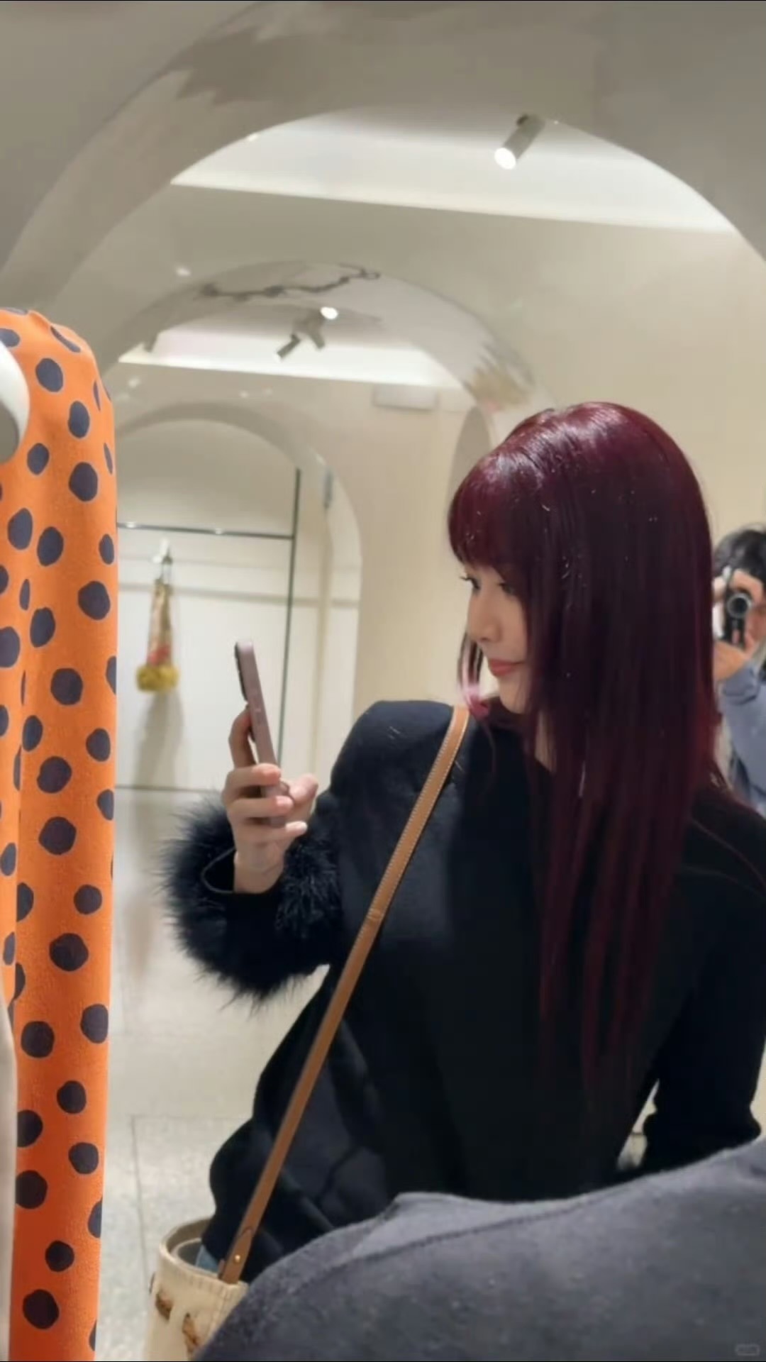 杨紫红发造型今日华伦天奴探店