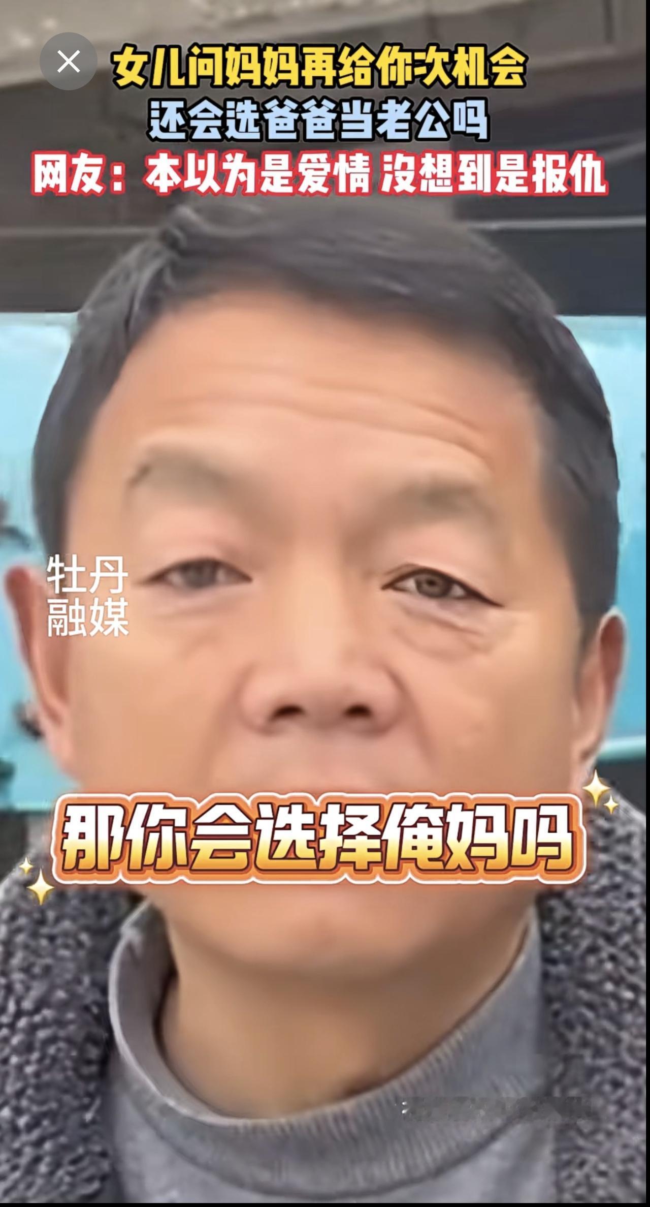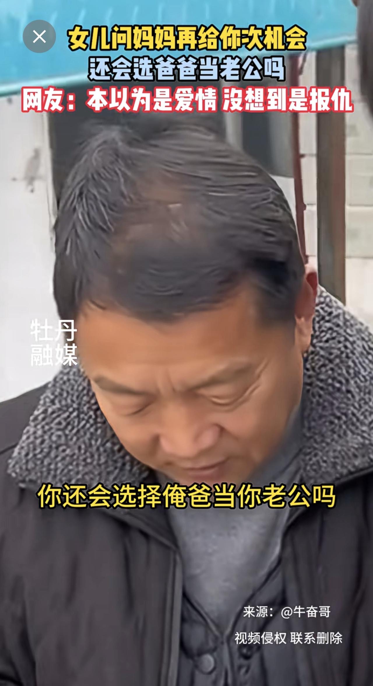 女儿问妈妈再给你次机会,还会选爸爸当老公吗?网友:本以为是爱情 没想到是报仇[捂