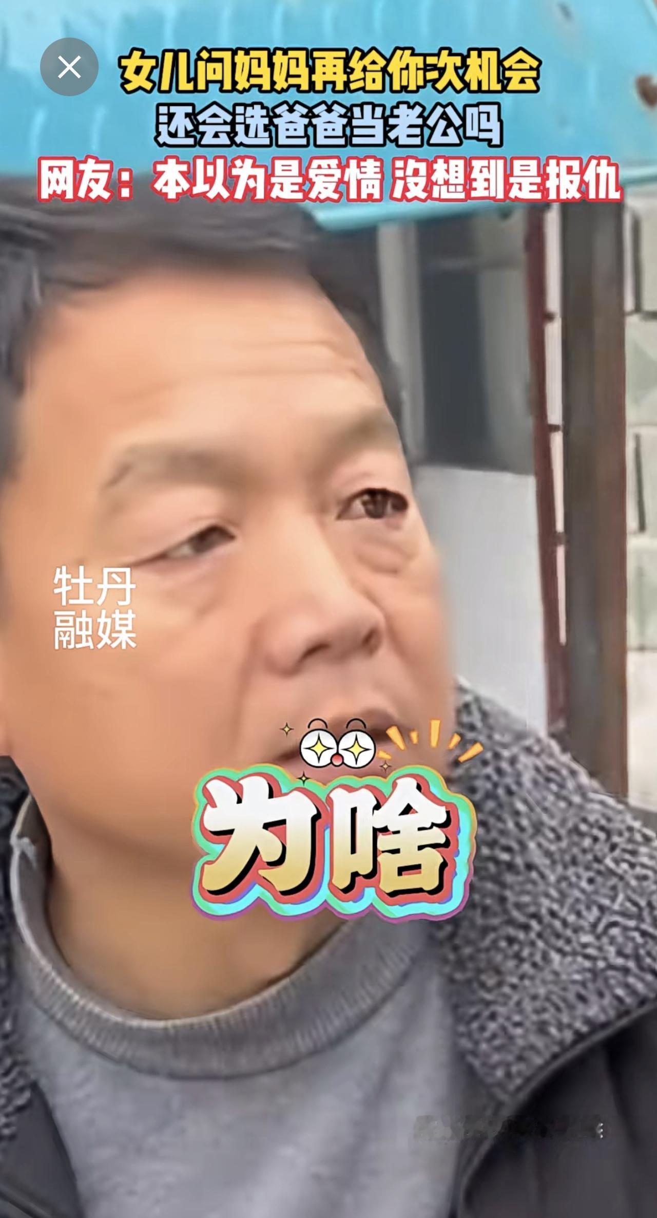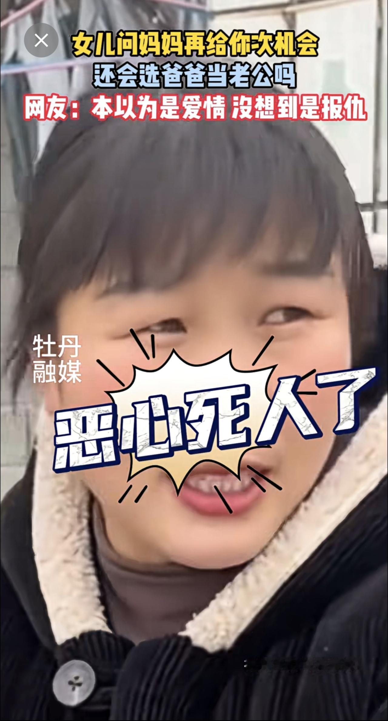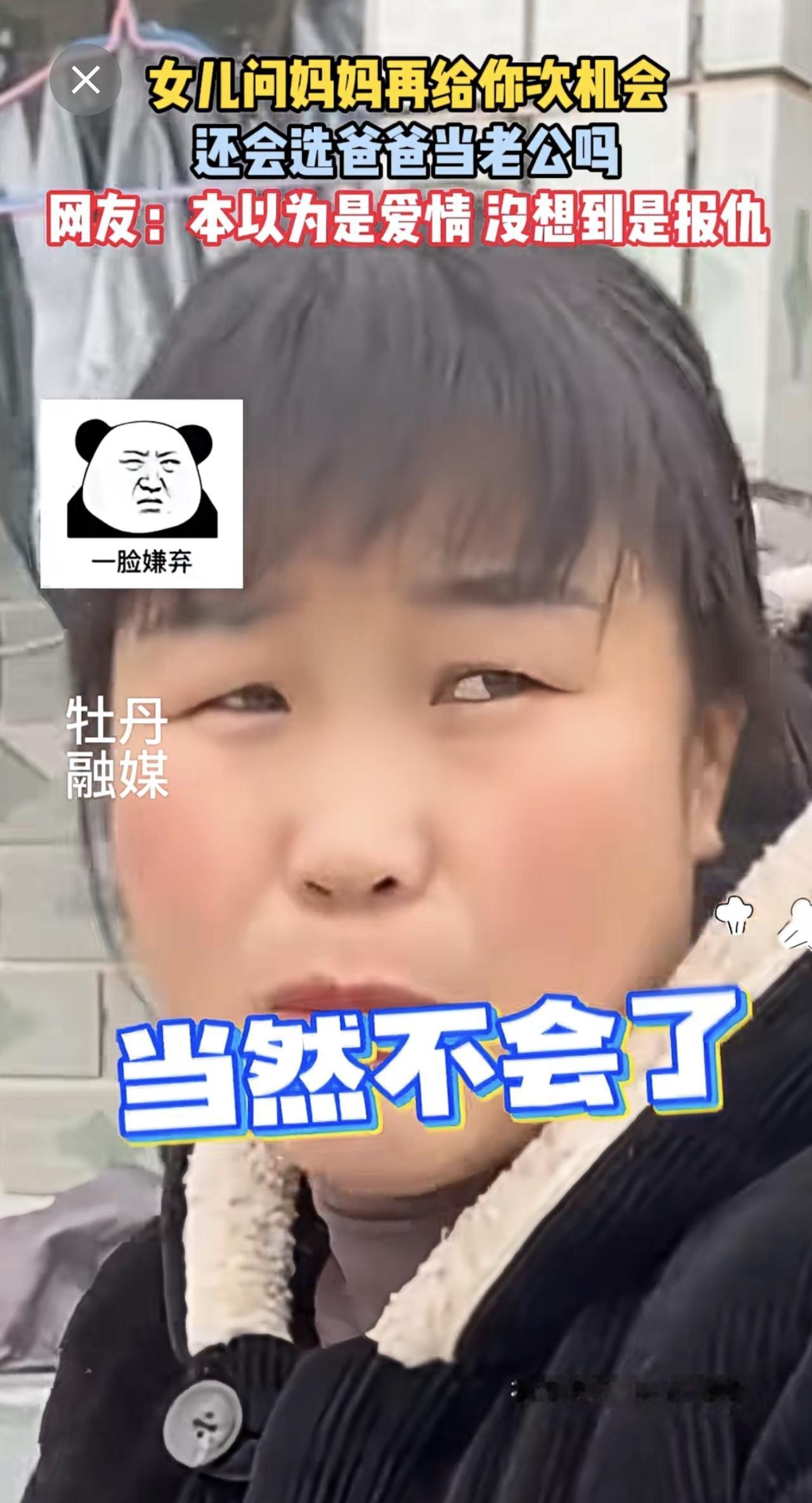 女儿问妈妈再给你次机会,还会选爸爸当老公吗?网友:本以为是爱情 没想到是报仇[捂脸]