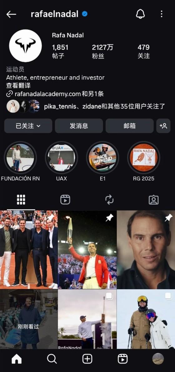 网坛“老三巨头”在ig上的粉丝数量对比! 粉丝数量:德约1642万,纳达尔2127万,费德勒1316万。 帖子数量:德约1602个,纳达尔1851个,费德勒597个。 关注数量:德约1827个,纳达尔479个,费德勒123个。 …… 由上可知: 至少在ig上,纳达尔的受欢迎程度是最高的。 费德勒是三位里面最懒的,既不愿意发帖子,也不愿意关注别人,显得很高冷。这方面,德约恰恰相反,关注了1800个别的账号。