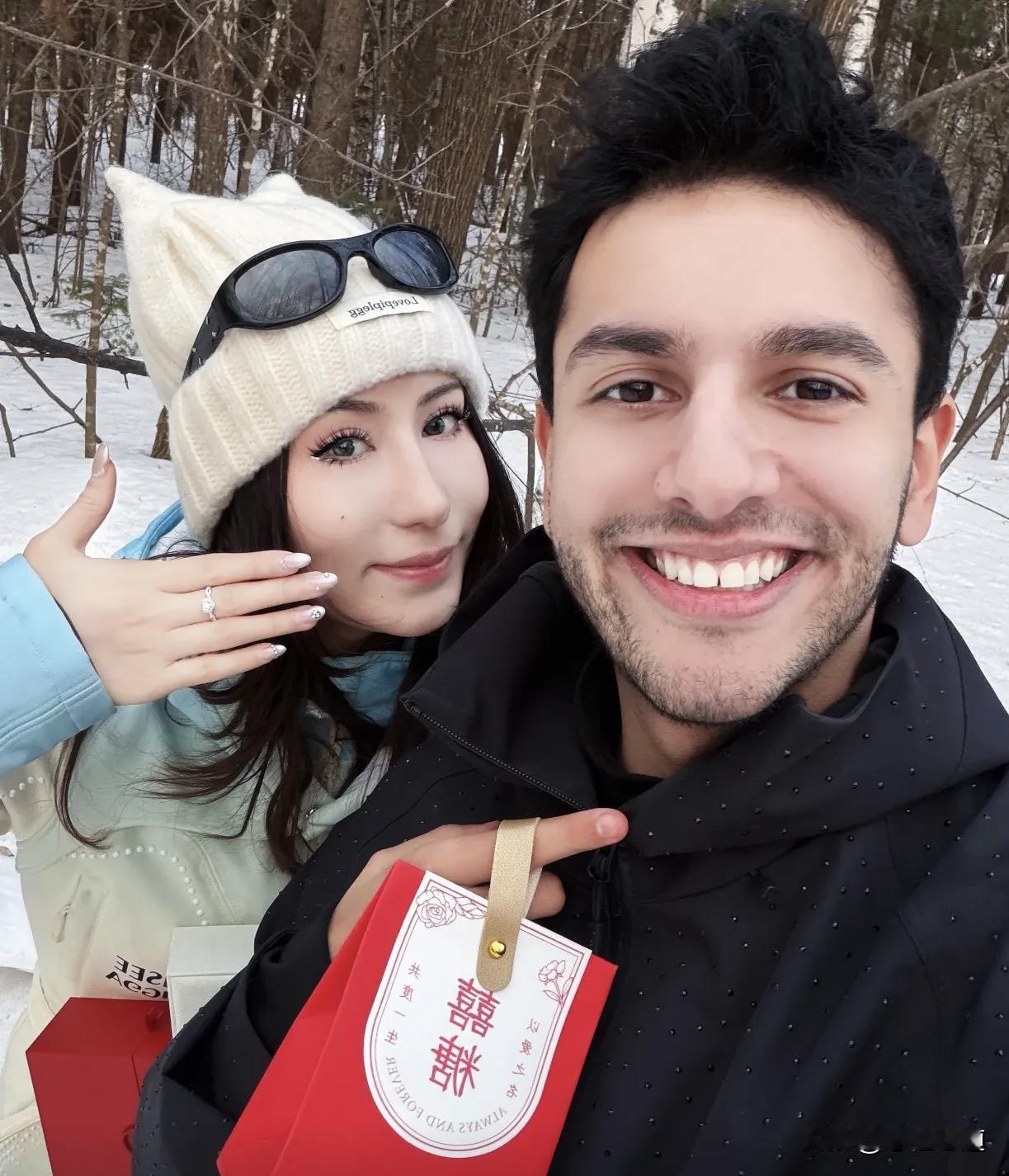 伊拉克记者方浩明订婚这事可太火了,连人民日报都来祝福。3月10日晚,他女友在社交平台晒照官宣,照片里方浩明在雪地单膝跪地求婚,女友感动落泪答应。 方浩明2000年生于伊拉克,童年历经战争,2011年来到中国,才过上安稳日子。他和女友是大学同学,相恋5年,女友是新疆人,他成了中国“准女婿”。此前王毅外长还暖心称中国是他的家。今年两会他还接受采访,说中国科技发展远超预期。网友都夸他是人生赢家,祝福他们百年好合,这爱情太让人羡慕啦!