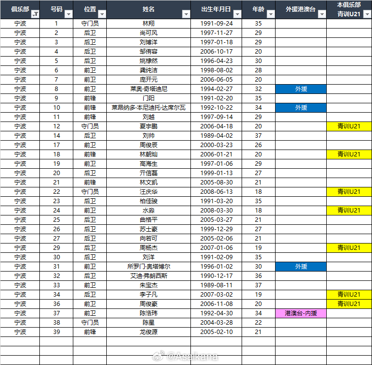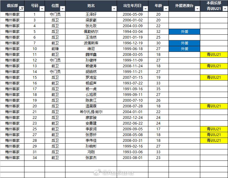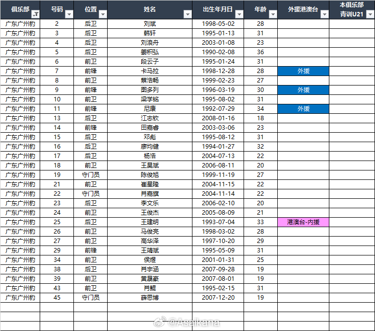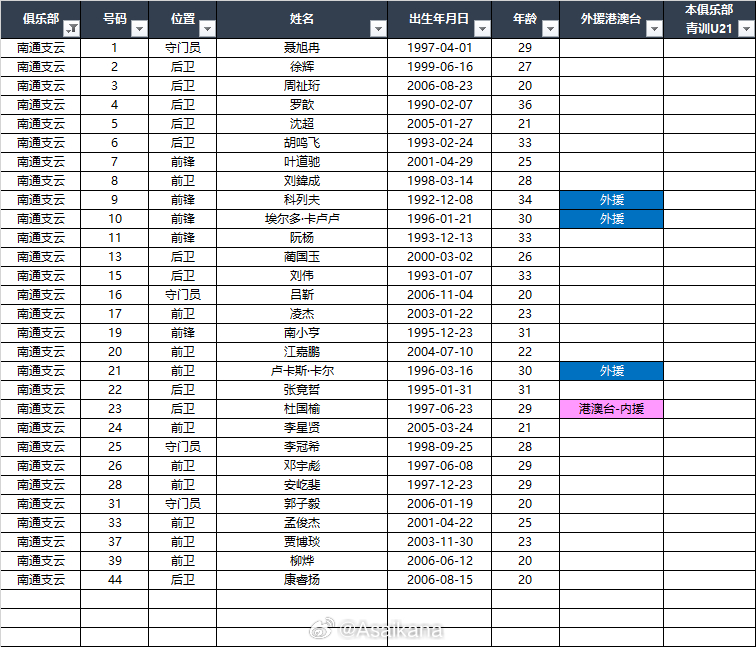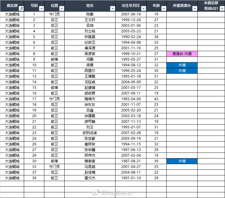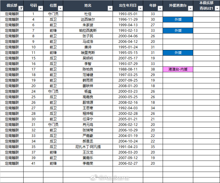 2026中甲联赛各队报名名单(季前)*自整理,青训U21的标注不一定准确,仅供参