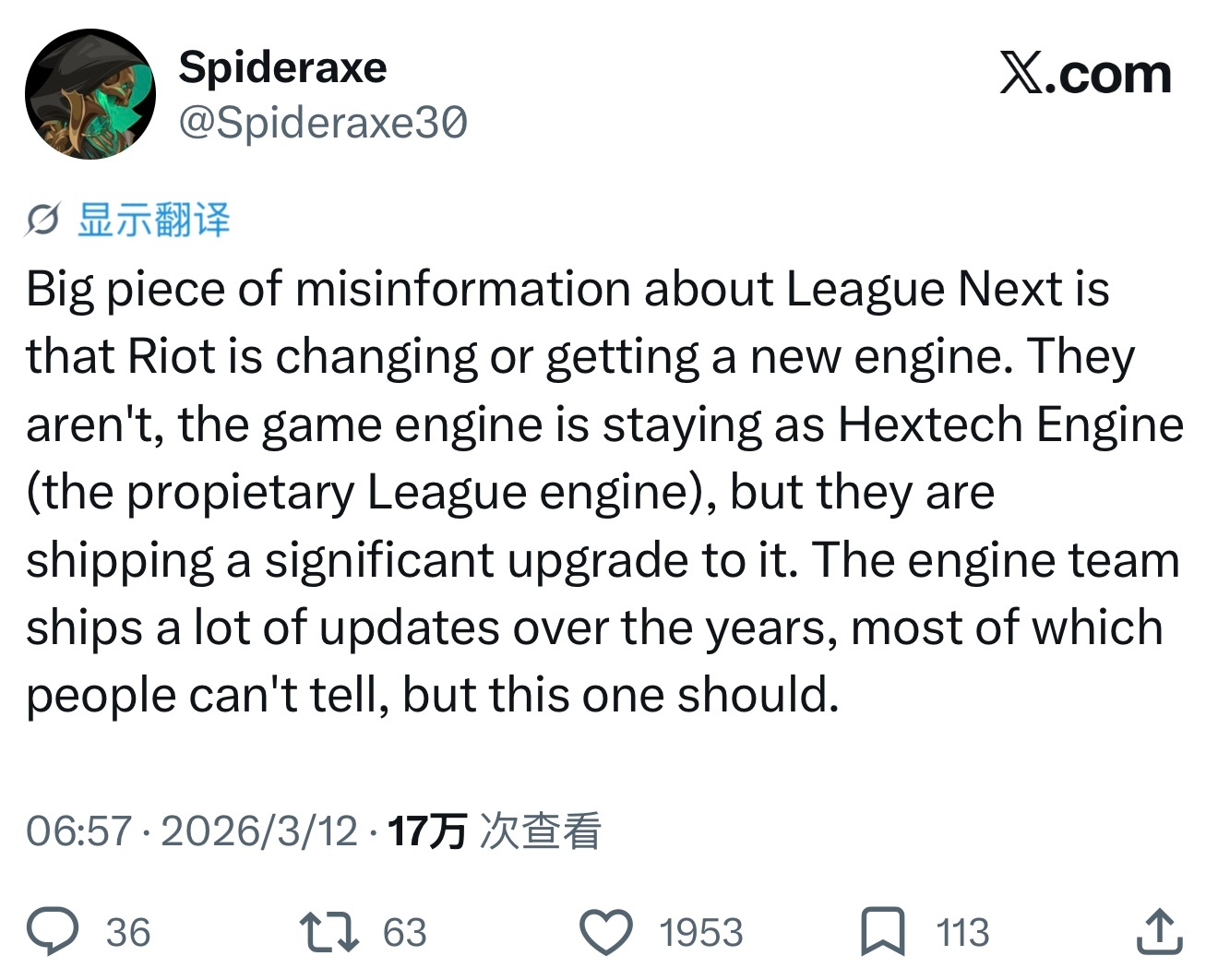 其实并非如此,游戏引擎依然是海克斯引擎(英雄联盟自研引擎),只是他们为其推出了一个重大升级。多年来,引擎团队一直在不断更新,其中大部分玩家都难以察觉,不过这次应该会明显感觉到。