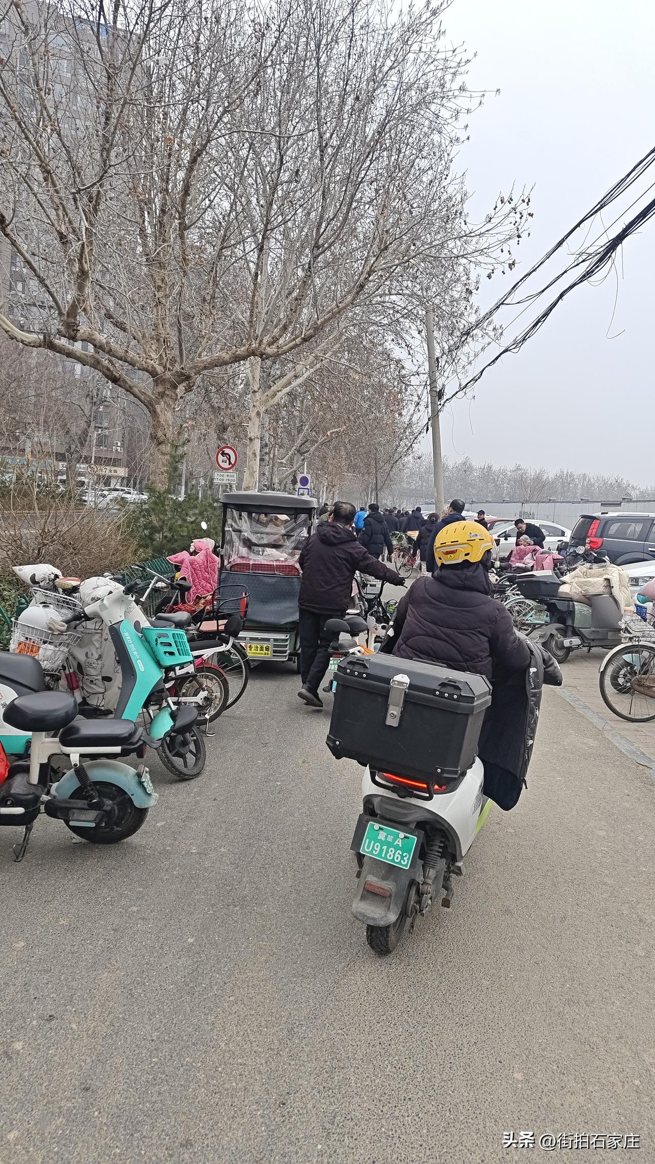 石家庄城管赶紧管理一下吧!大集市都开到马路上了! 大路都堵了,自行车都过不去! 石家庄翟营南大街,二环外,方兴路北,一大段。 都在自行车辅路上摆摊,围的水泄不通! 如果大家都这样摆摊,那交通彻底瘫痪了就! 相关部门赶紧管理吧,太乱了!