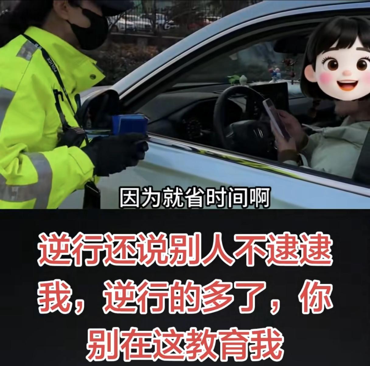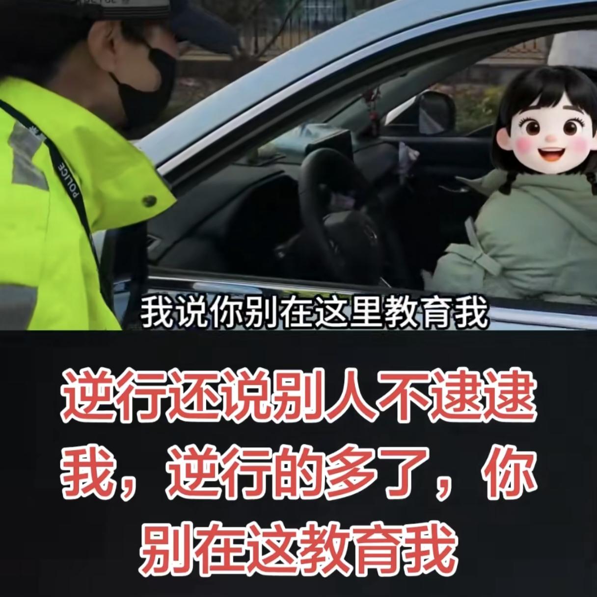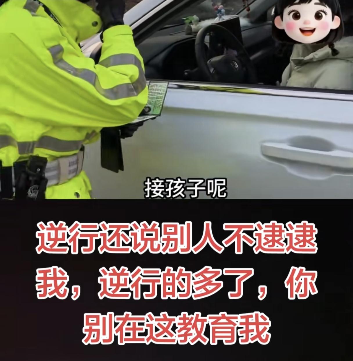 “你别在这教育我!”女子出门接孩子逆行,被交警逮到后态度嚣张的说:“逆行的多了,别人不逮逮我,你快点,接孩子放学!”女子一脸无所谓的样子,怼的交警的震惊了! 女子出门接孩子逆行,结果凑巧,被交警逮到了,不仅没有羞愧感,还一脸无所谓的说:“这也太巧了吧,别人不逮逮我!” 交警问为啥要逆行,女子回答:“逆行的多了,因为就省时间呀!” 全程交警都非常有礼貌的在跟女子说话,在跟她讲道理,她却一脸不耐烦的说:“你不用提问我,你别在这里教育我,怎么能教育我呢?” 交警面对女子的违法行驶,善意的提醒、教育难道不是应该的吗?而女子只是一味的催促交警快点,自己赶时间接孩子,最后无所谓的接受了处罚便扬长而去! 真是违法成本太低了,女子根本不在乎的样子,逆行可大可小,万一出了事,这孩子可就真没法接了! 况且本来就是她有错在先,不仅不羞愧,还态度这么不礼貌,我都佩服视频里的交警能情绪这么稳定的一直在跟她讲道理! 现在没理的比有理的人还豪横,最后女子虽然接受了处罚,但只要她逆行不出事故,她永远不会认识到自己的错误! 人教人教不会,事教人一次就够,开车千万不能存在侥幸心理,今天还看到一个新闻是车辆在黄灯时加速通过,结果撞到了骑电瓶车的路人,造成死亡! 道路安全谨记在心,一次意外终身后悔!