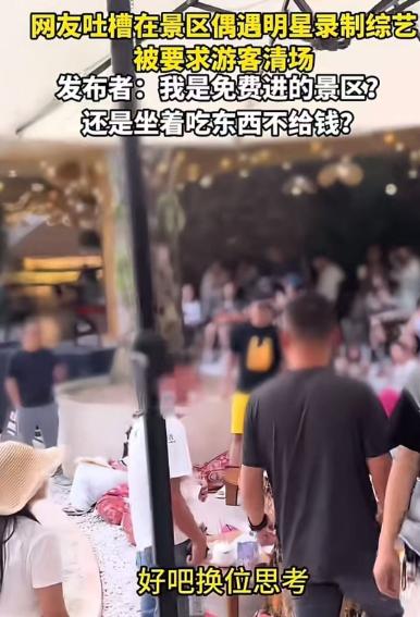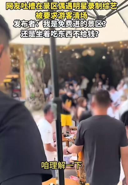 男子吐槽在景区偶遇明星录制综艺,被要求游客清场。发布者:“明星了不起啊?我是免费