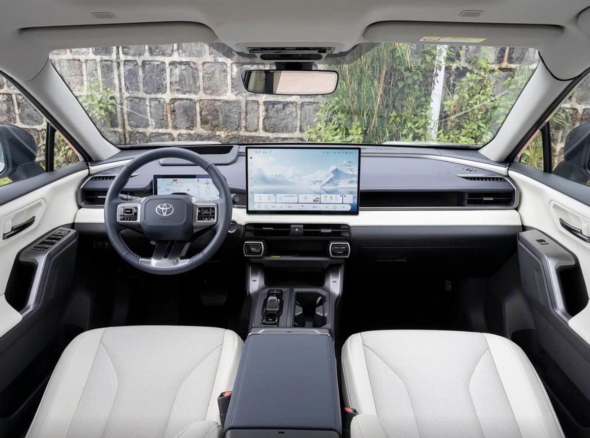 接着咱们坐进车内,全新威兰达的内饰也十分用心了,说是翻天覆地的变化不为过。比如配色很大胆,实拍车型这款黑米色拼接风格在丰田以往车型中怕是只有旗舰之作才会出现,并且大面积软包材质让座舱高级感显著提升,细节上还有金属质感的装饰件点缀。另外吸引目光的地方就是15.6英寸中控屏,尺寸大且边框薄,车机系统从UI界面到功能应用也都挑不出什么毛病,智能化体验虽不能看齐新势力,可起码比丰田之前的水平高出太多。