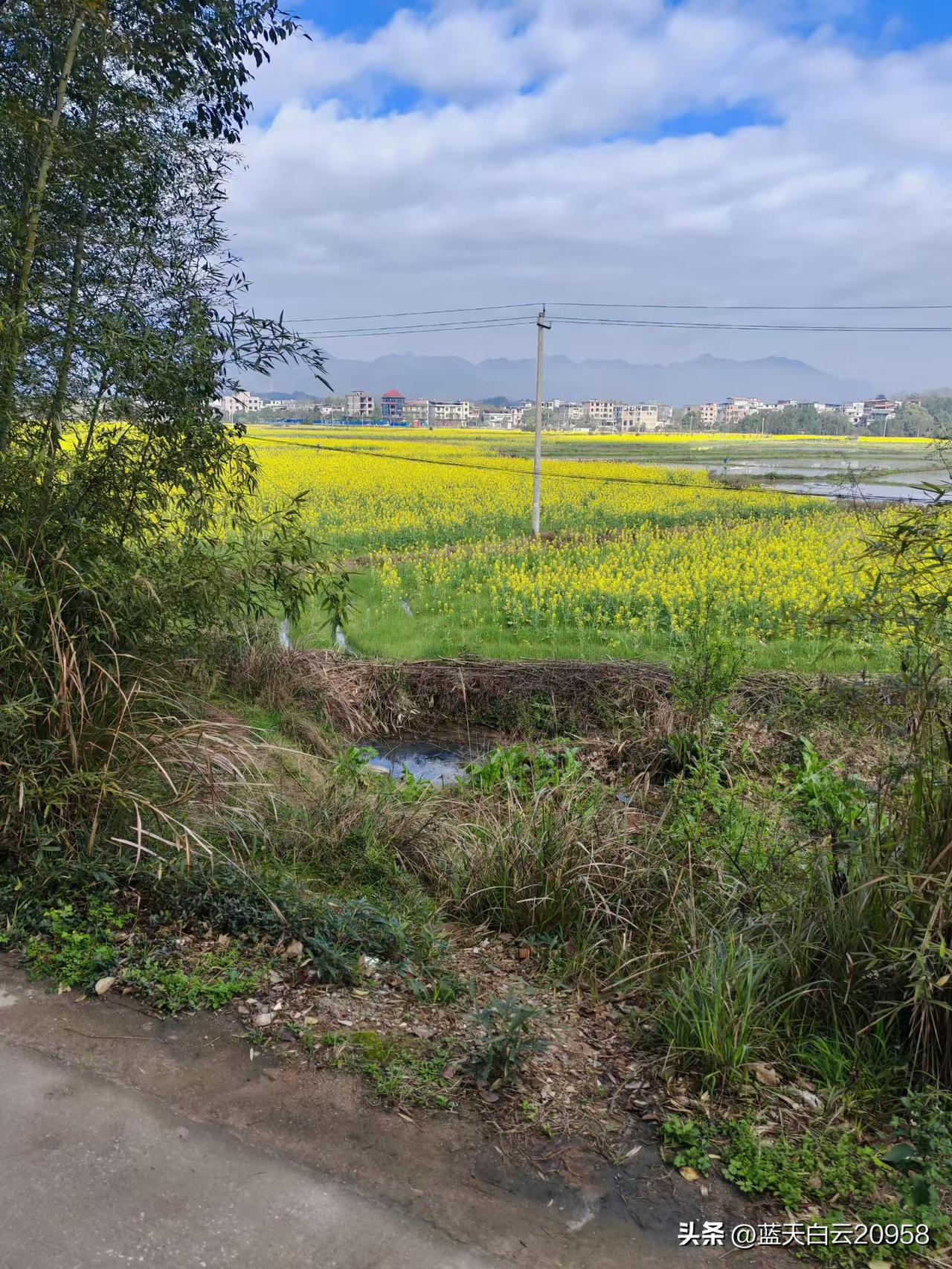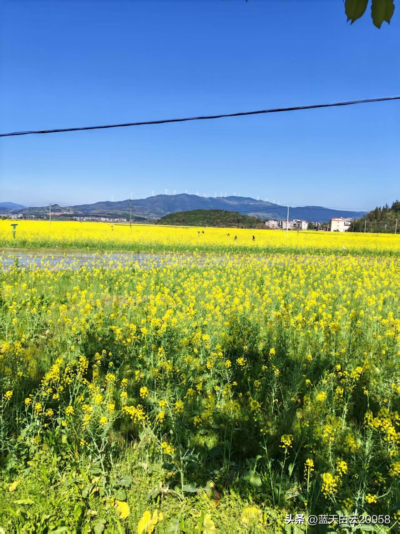 油菜花开了,油菜花田铺展成一片金黄的海洋,现在的油莱花有七彩的,五颜六色,美极了。 微风拂过,浪涛轻摇,仿佛大地在低语春天的秘密。树影斑驳,小路蜿蜒,每一帧都像一幅未完成的画。 藏着时光的温柔与静谧。季节悄然流转,而我在此刻驻足,听见花开的声音。看如画的花海。家乡真美
