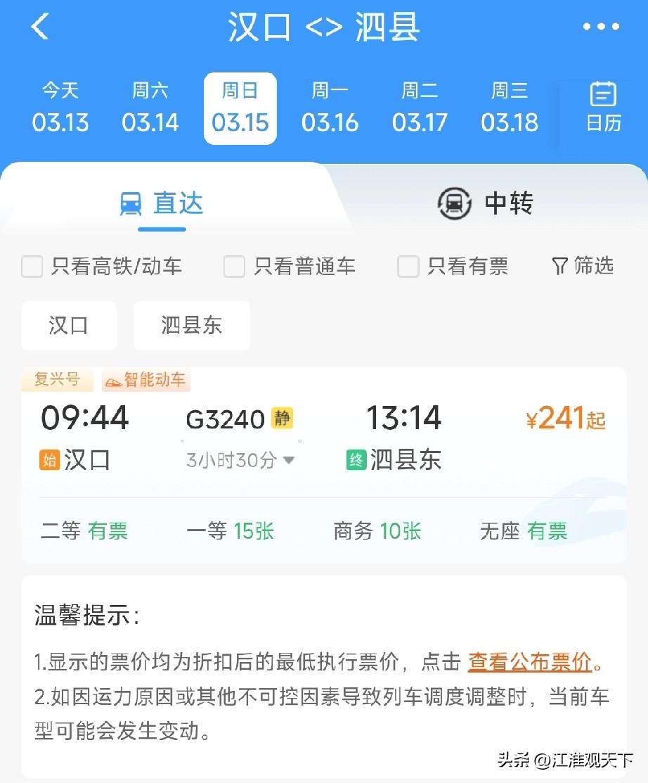 安徽泗县到湖北汉口的高铁后续只在周五,周日开行了,客流支撑不起来 高铁大大方便了