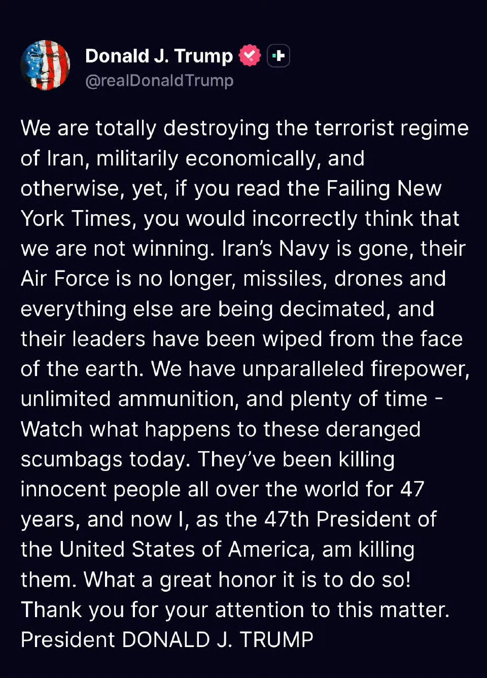 🔻特朗普:赢了✌️,纽约时报是fake news🔻via realdonaldtrump美军一加油机坠毁据称非被击落伊朗称若电力遭袭整个地区将陷黑暗海外新鲜事中东现场直击