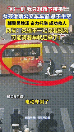 公交车上的孩子倒挂在车窗外,在危急时刻,好心人救了这个孩子!这一幕发生在张家界,一辆正在行驶的公交车的车窗,突然从里面掉出来一个孩子,孩子悬挂在了车窗外,情况非常危急,这时候一个骑车的男子扔下了车,跑到公交车旁,把孩子扶进了车内。实实在在说,这画面太惊险了,多亏这个好心男子见义勇为,否则这个孩子的后果不堪设想!