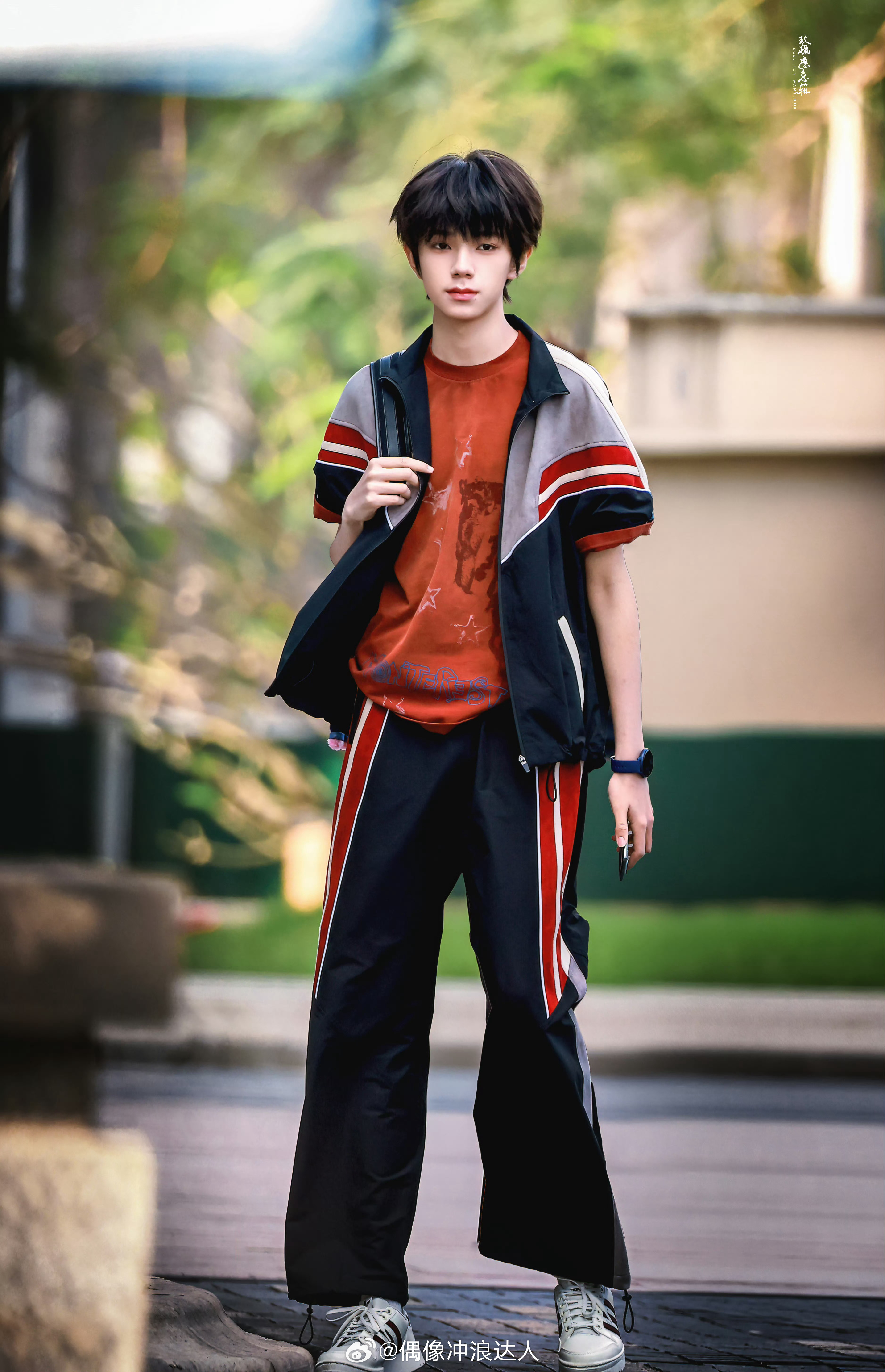 对王橹杰优越的身材比例有实感了。。占满半屏的腿。。好清爽运动风的付学长王橹杰腿长到一步迈三个台阶王橹杰付彬言