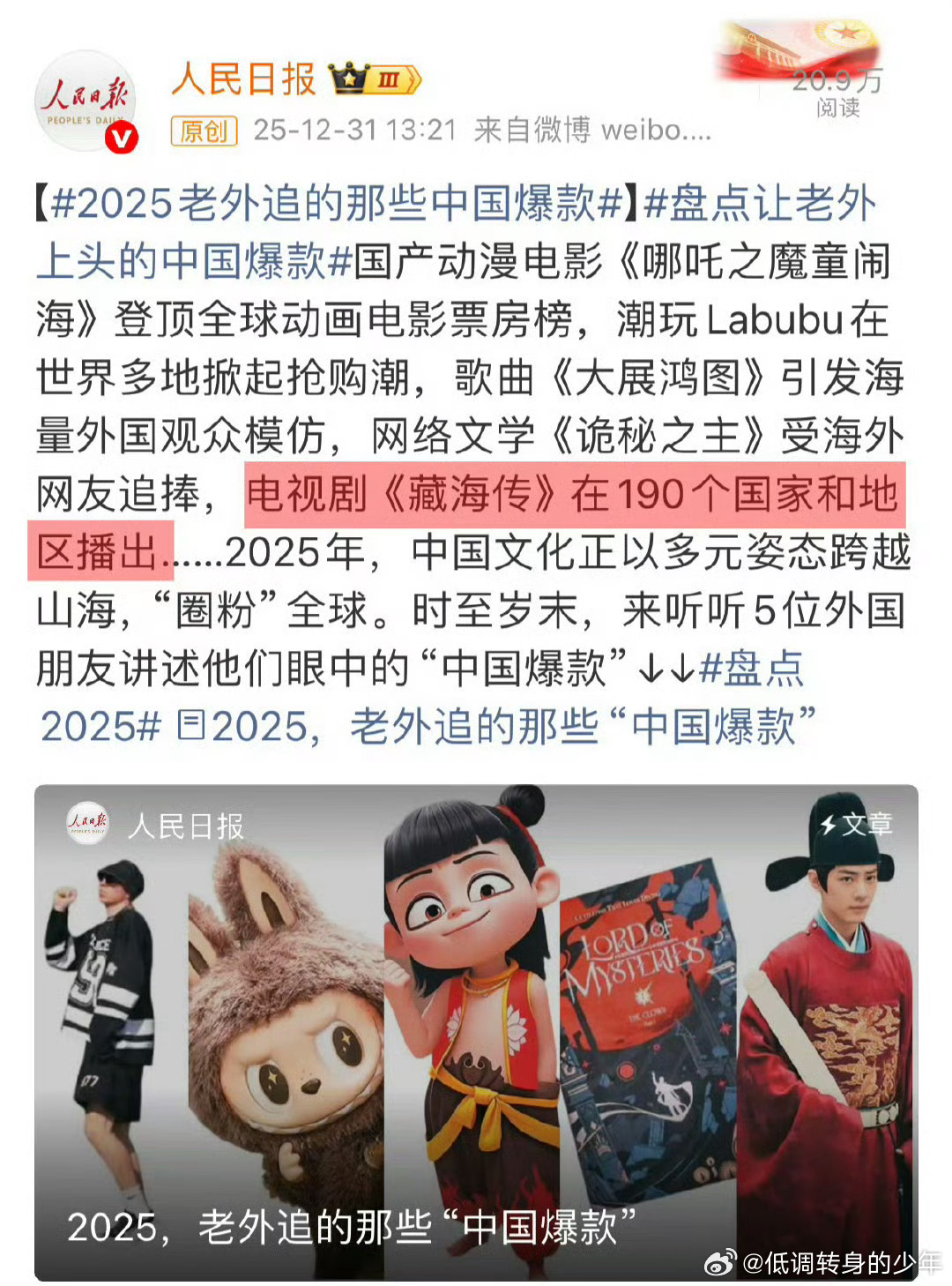 藏海传生万物等剧又拿奖了 论口碑~藏海传 播出期间主流媒体和观众一致好评论传播~《藏海传》引发两岸共鸣全球共赏文化出海掀起非遗文化潮;论演技~肖战“命不该绝”等数不胜数名场面火爆全网论收视率~《藏海传》央视五年古装第一;论播放量,2025年《藏海传》全面封顶;论讨论度,野生编剧上桌,剧粉口口相传,论国际影响力~藏海传是靠自己创造主流价值还有全球文化传播,是那些靠题材原型来上价值的剧不能比的!这样看肖战拿什么奖都是应得的藏海传生万物等剧又拿奖了