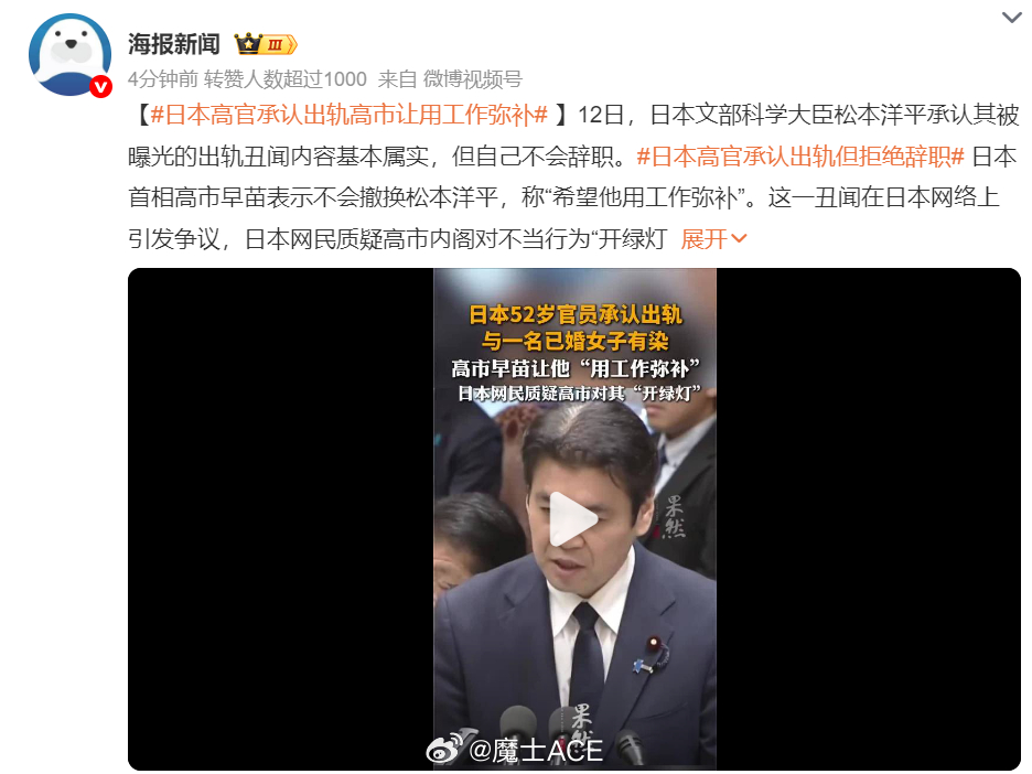 日本高官承认出轨高市让用工作弥补烽火问鼎计划 这是谁写的词条,我看见词条的时候,