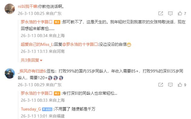 罗永浩发文给一个极其优秀的小伙子征婚,称该小伙年收入打败99%的中国同龄人。(网友猜测几百万) 重点来了,有网友留言:“性别能不能放宽一点?”[捂脸]看到这直接噗了[大笑] 不过既然这么优秀,怎么把自己耗到了35?龙的回复看完继续噗…… 隔壁桌同事:这算不算是对男士的严重诋毁?