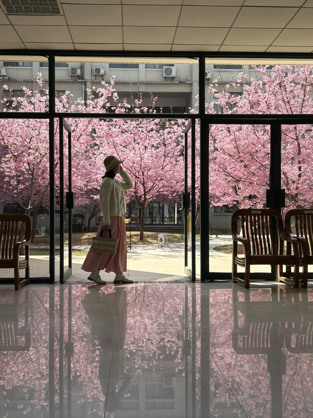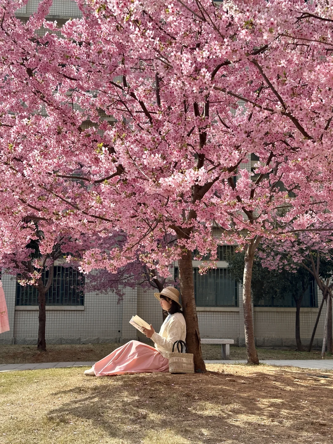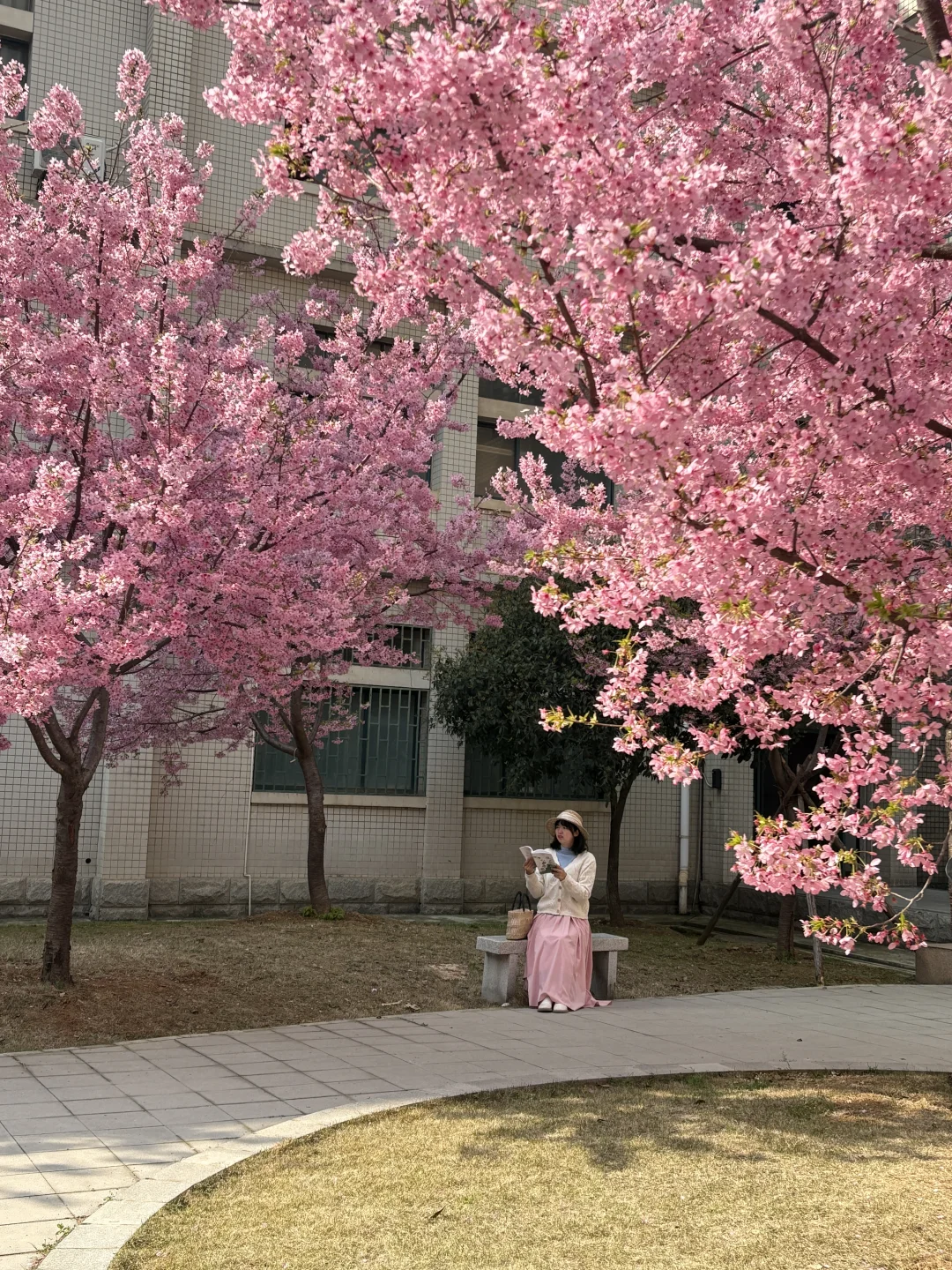 湖经的粉色早樱也太美啦 人少景美很多拍照机位和角度 随便拍都出片美哭了! 樱花🌸在群贤楼 东门右边和教五还有美人梅 📝东门进,开车预约可以开进去,行人需要带身份证