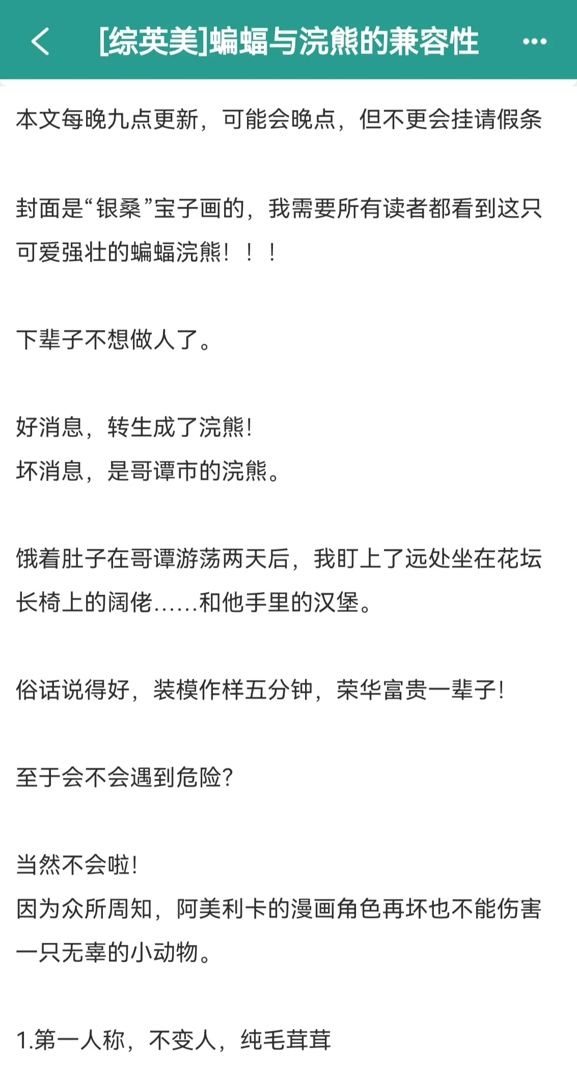 [综英美]蝙蝠与浣熊的兼容性。作者PS: 1.第一人称,不变人,纯毛茸茸 2.蝙蝠家走韦恩家族大冒险设定,有ooc 3.日更 立意:遇到困难,不要放弃