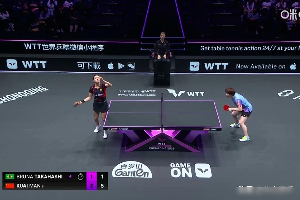 侯英超直播吼蒯曼发的太差 转头她3比1干翻巴西高桥! 如果你看了重庆冠军赛直播,肯定能听到侯英超拍桌子的动静。赛点局10比9握发球权,蒯曼愣是被高桥爆挑丢局。 邱贻可早跟教练组提过,蒯曼反手是世界级水准,就是缺那股舍我其谁的狠劲。从双打配角转单打核心,她自己赛后都认关键分战术执行不坚定。 是蓄力,不是慢热是憋劲,不是手软是藏锋。