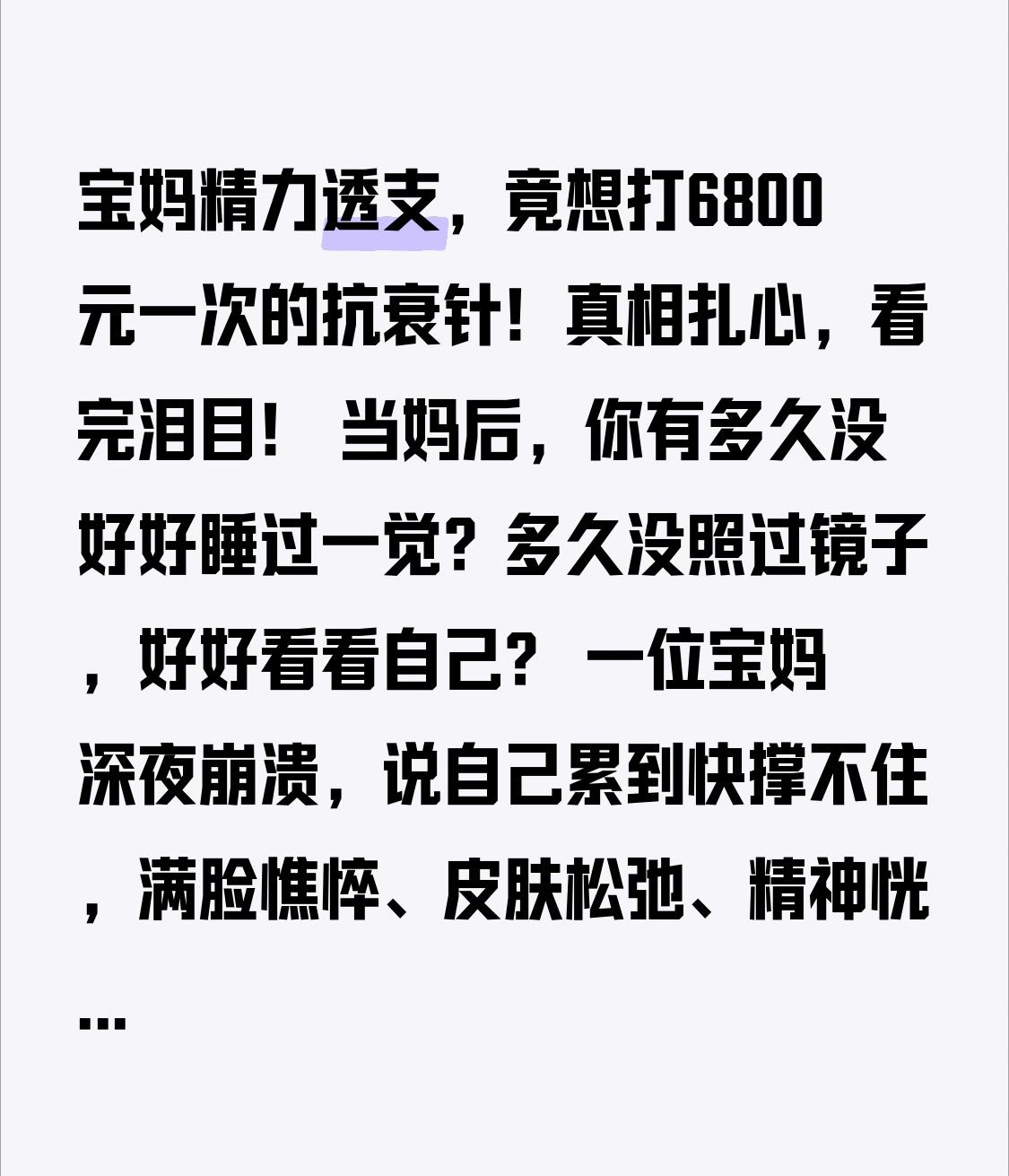 宝妈精力透支,竟想打6800元一次的抗衰针!真相扎心,看完泪目! 当妈后,你