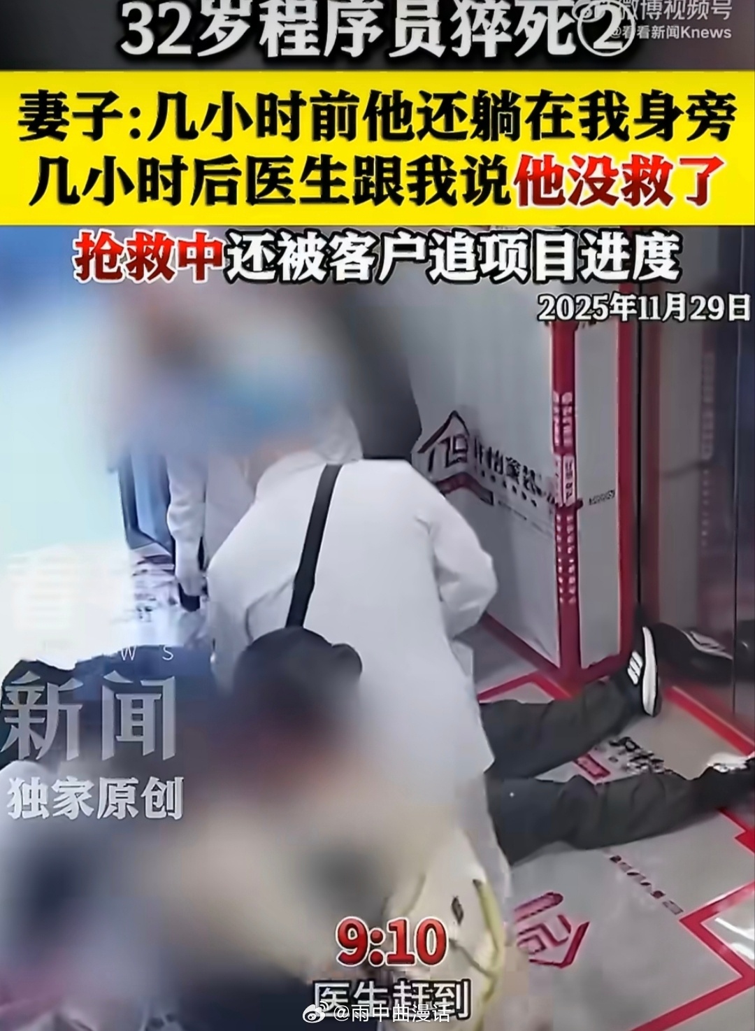 猝死程序员多次晕倒画面曝光监控里反复晕倒的画面,看得人揪心。他不是不珍惜生命,而是被压力推着停不下来。倒下前还惦记工作,抢救时仍被催进度,冰冷的消息比病痛更伤人。这不是个例,是无数职场人被透支的缩影。生命只有一次,没有什么工作值得拿命去换。别等失去才懂得,健康才是最珍贵的财富。