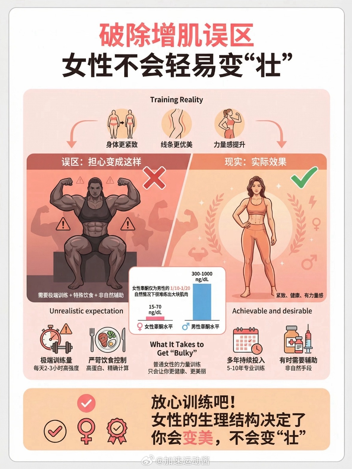 别怕练成金刚芭比,女生那点激素水平,想练大真的很难!! 从今天起,别光盯着体重秤