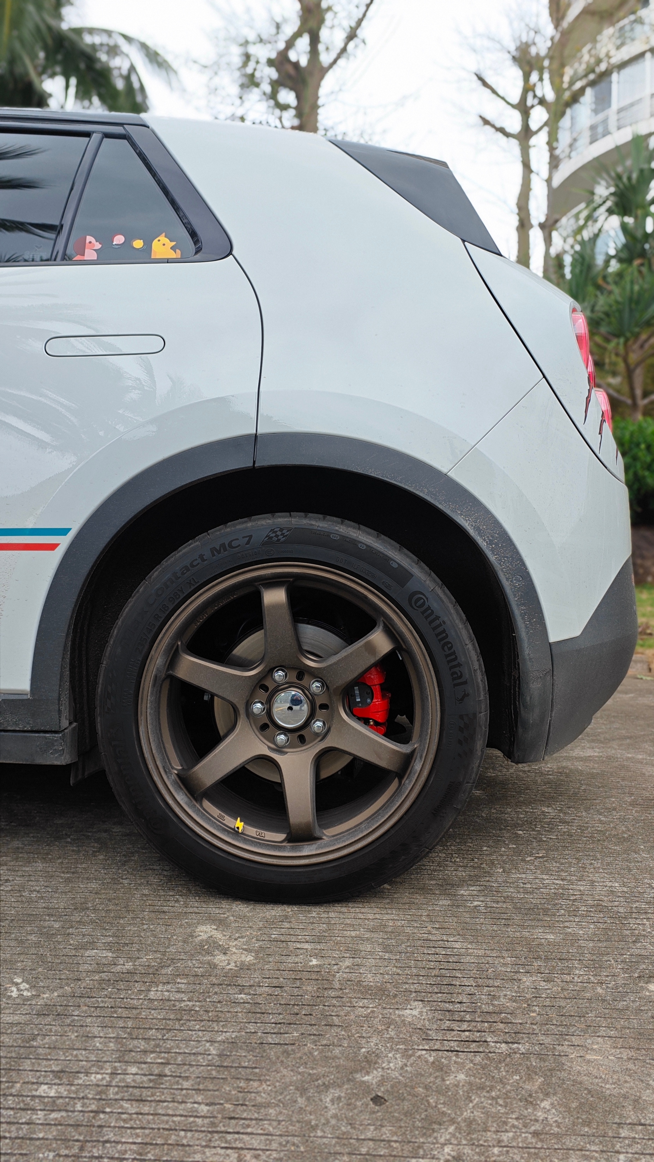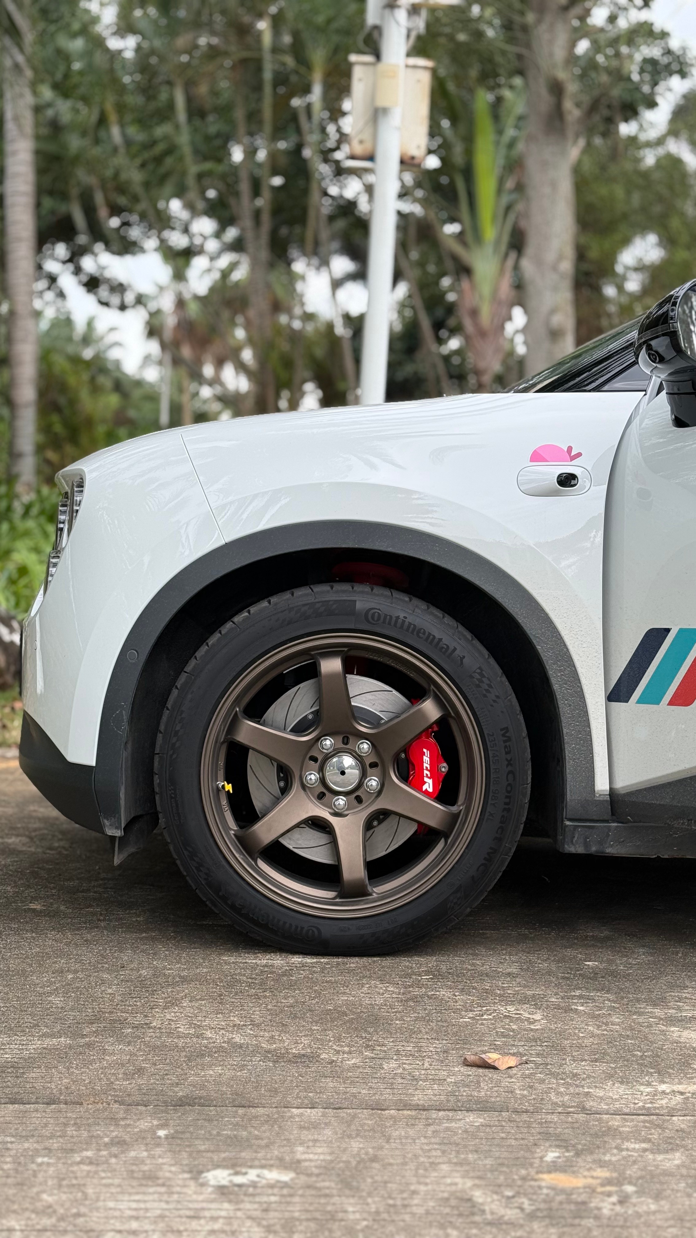 考虑到平衡性和簧下质量,我最终选择了FECCR的ST4而不是ST6。虽然他们之间重量差并不大,最主要是ST4前刹车我装了最大号的345的盘,卡钳大小和盘体尺寸前后看起来更协调。而且本身我对这个车的需求就是原汁原味更运动感即可。less is more。轮圈:迈斯盾FF010,轮胎马牌MC7235/45R18 98Y。firefly萤火虫