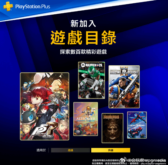 港服PS+二三档3月新游公布,《战锤40K:星际战士2》+《女神异闻录5:皇家版》索尼今日公布了2026年3月份港服PS Plus会员二三档的完整游戏阵容,本月玩家可以玩到的游戏包括《战锤40K:星际战士2》、《女神异闻录5:皇家版》等。三档会员还将迎来经典格斗游戏《铁拳5:黑暗复苏》。以上游戏均将于3月17日正式加入服务。完整阵容如下:《战锤40K:星际战士2》| PS5《麦登橄榄球26》| PS5《女神异闻录5:皇家版》| PS5、PS4《神之亵渎2》| PS5、PS4《合金天使:堕入伊甸》| PS5《异星探险家》| PS5、PS4《铁拳5:暗黑复苏》| PS5、PS4 | 三档