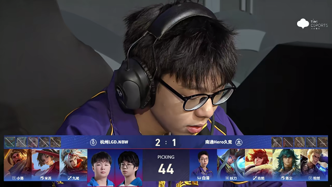 虎扑03月13日讯LGD/Hero第四局,南通Hero久竞.白清选出东皇太一辅助