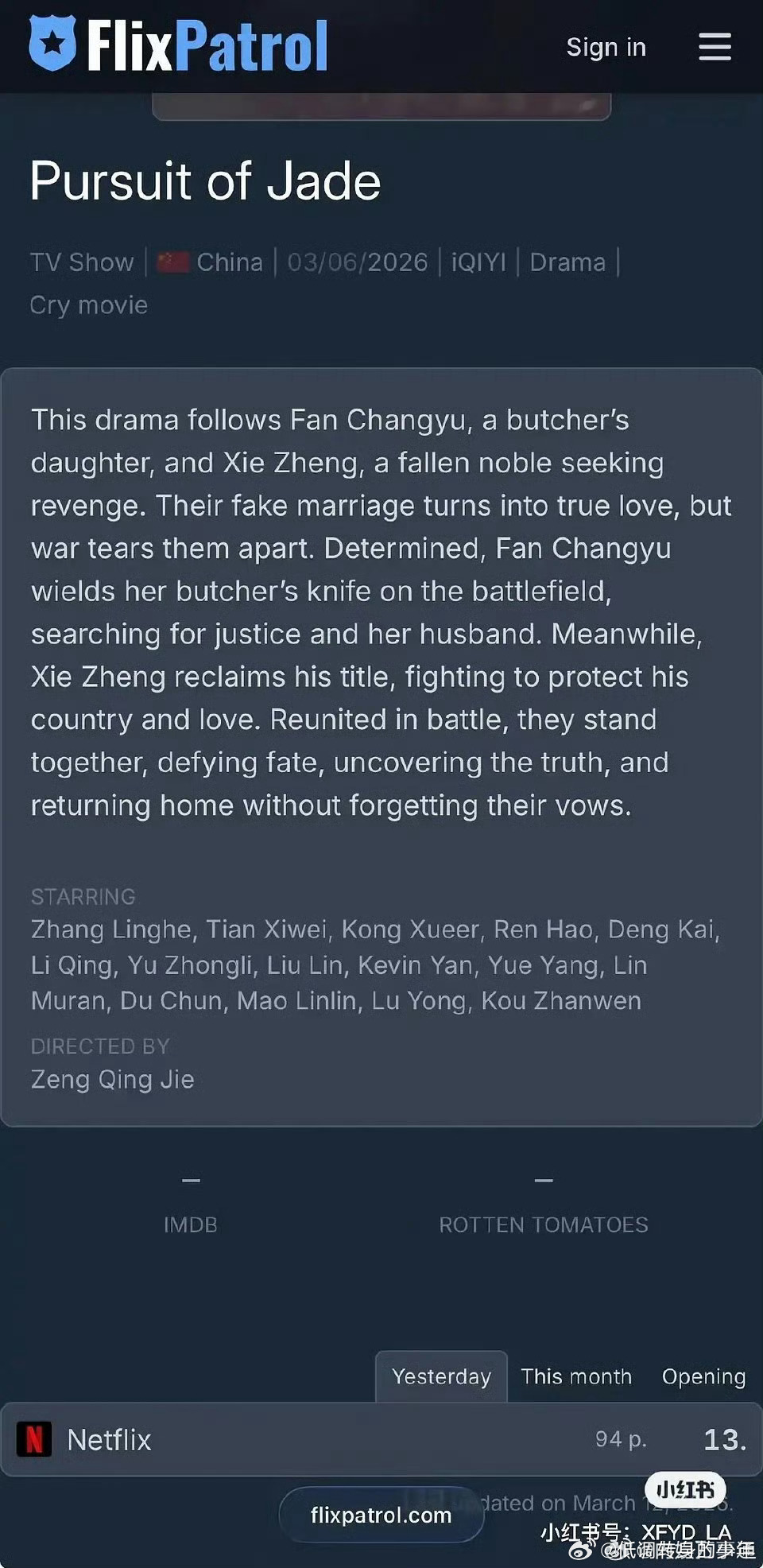 逐玉18集太惨了太惨了,看点振奋人心的吧!逐玉 今天升到了网飞全球榜13名