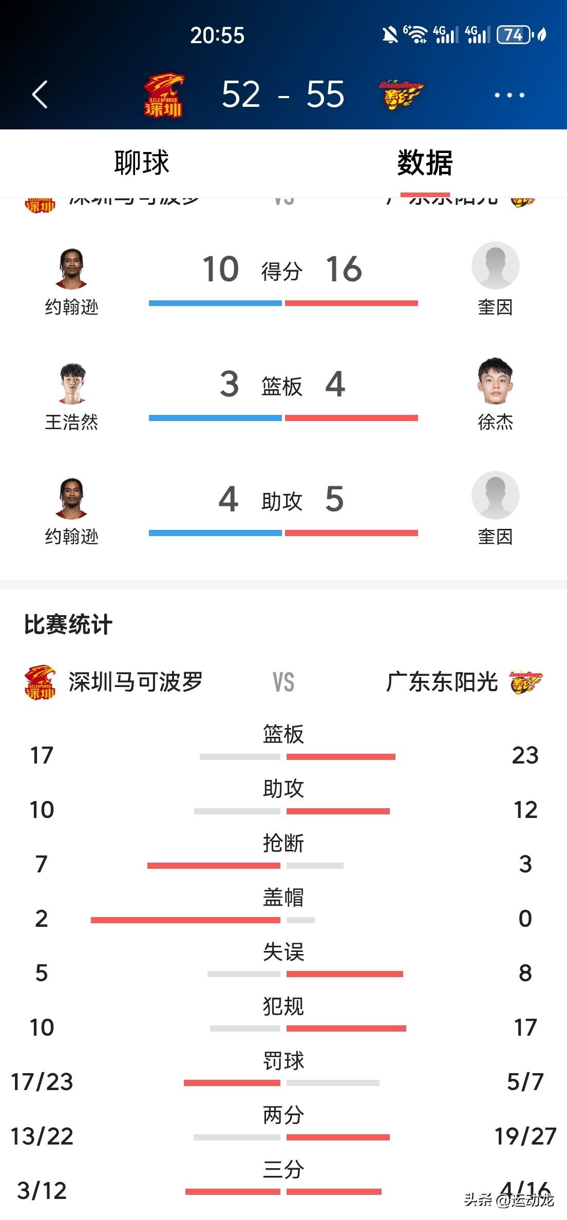 徐杰上半场抢下4篮板,暂列两队篮板王,徐中锋果然名不虚传! 奎因第二节一改首节低迷,单节7投中6,砍下13分,帮助广东队55:52维持3分领先优势。 广东队上半场三外援合砍37分,奎因16分2篮板5助攻,萨林杰12分,萨姆纳9分3篮板。 广东队掉入违规陷阱,深圳依靠罚球紧追比分,半场23罚17中,对比广东队7罚5中,罚球一项足足多出12分。