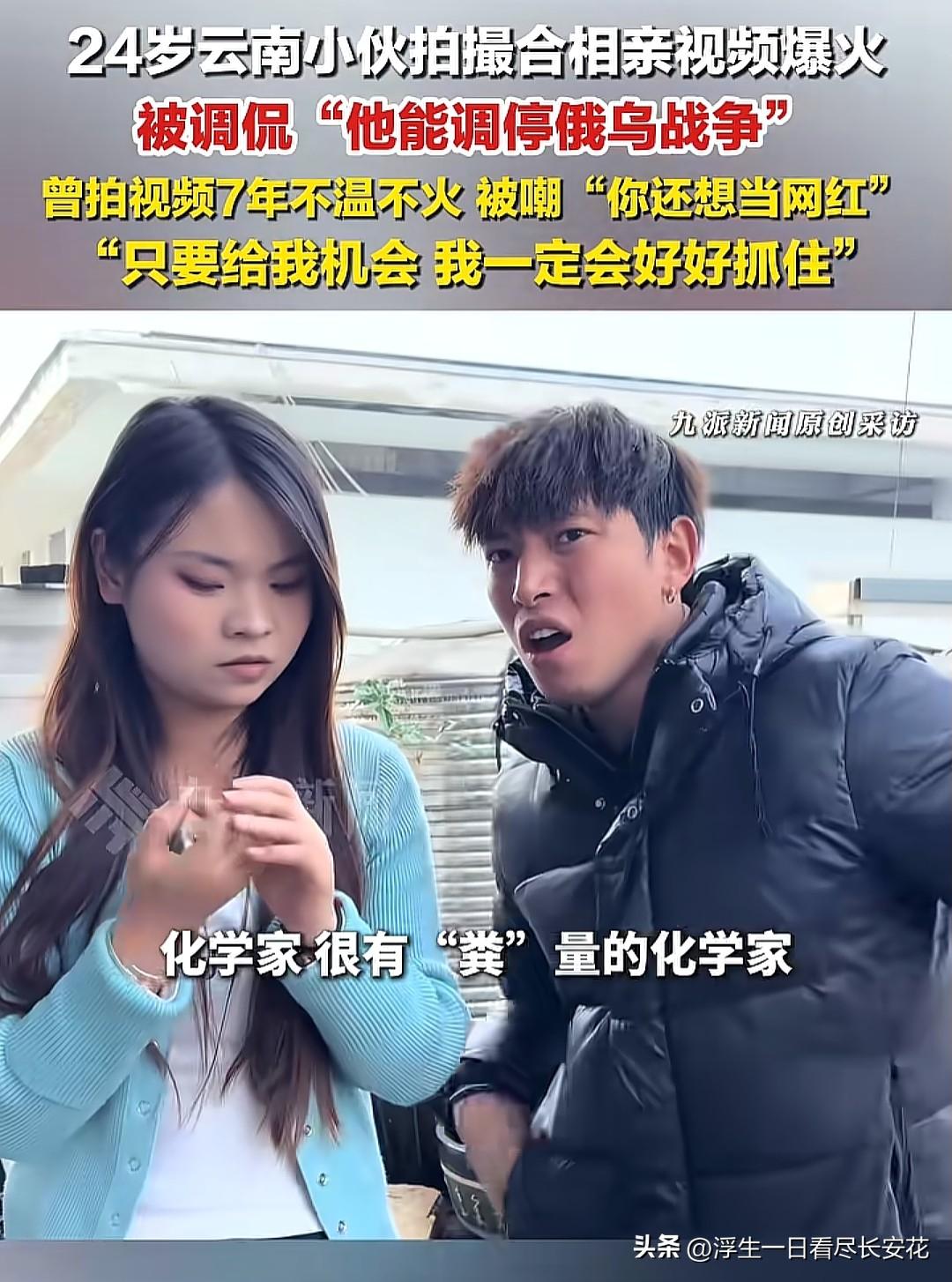 从被嘲“你还想当网红”到“一月涨粉百万”:这个云南小伙的爆火,藏着普通人的逆袭密码 24岁云南小伙李心火了,靠拍搞笑相亲视频,一月涨粉百万,网友调侃“他能调停俄乌战争”。可谁能想到,他曾拍视频7年不温不火,被身边人嘲笑“就你还想当网红”。如今他拒绝5万广告报价,只说“只要给我机会,我一定会好好抓住”。这个看似偶然的爆火,其实是一个普通人在互联网时代,用7年坚持换来的必然结果。 他的视频里没有华丽的特效,也没有刻意的煽情,只有接地气的谐音梗和真实的生活场景:把“干化粪池的”说成“很有‘粪’量的化学家”,把“搬砖的”说成“大‘砖’生”。这些看似简单的段子,却精准戳中了网友的笑点——在快节奏的生活里,人们需要的正是这种“不费脑”的快乐。正如他自己所说:“拍视频就是为了逗大家开心”,这种纯粹的初衷,反而让他在充满功利的网红圈里脱颖而出。 更难得的是,在爆火之后,他没有被流量冲昏头脑。面对5万的广告报价,他选择了拒绝,因为他知道“如果接了广告,就会失去粉丝的信任”。这种清醒,在网红圈里尤为珍贵。很多人一夜爆红后,就开始疯狂接广告、割韭菜,最终被粉丝抛弃。而他却明白,流量是暂时的,只有用心做内容,才能走得更远。 从被嘲笑到被追捧,他的经历告诉我们:在互联网时代,每个人都有逆袭的机会,但前提是你要坚持,要真诚。就像他拍了7年视频,虽然不温不火,但他一直在积累经验,打磨自己的风格。当机会来临时,他才能牢牢抓住。 大家身边有这样“默默坚持,最终逆袭”的故事吗?评论区聊聊~