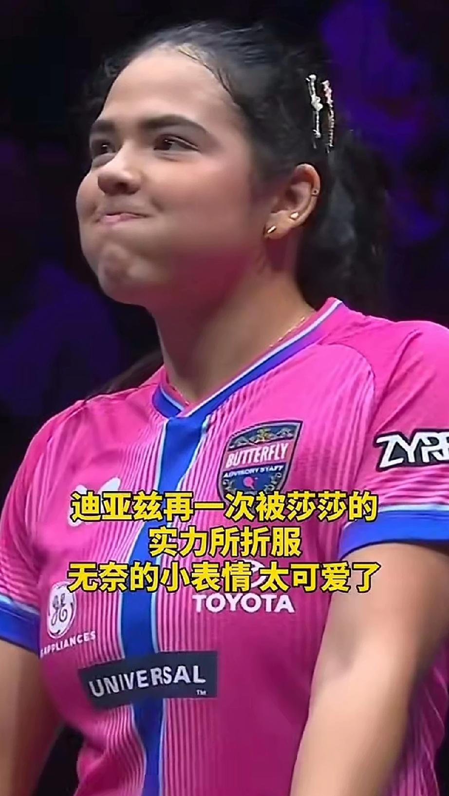 莎莎重庆冠军赛最大的收获来了。大家看看她的表情,可爱、温暖、高兴。 莎莎实力太强了,这就是学霸,最后一球结束后立马露出笑脸,这是面对好朋友才会放松的样子。 迪亚茨再次被莎莎的实力征服,无奈的小表情太可爱啦。笑容满面的莎莎再次成为外协的白月光,她真的很会呀。 好好休息,下一站对阵蒯曼啦。同门师姐妹!加油!