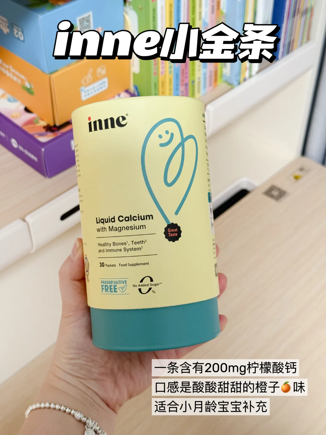 适合小月龄宝宝补充,周围宝妈也在给娃吃,就跟着入了,味道是甜甜的橙子味,我家娃一开始还挺愿意喝,不用硬喂,查了下是柠檬酸钙,温和不刺激,每条200mg钙含量,也没有防腐剂那些,对小月龄娃挺友好的!