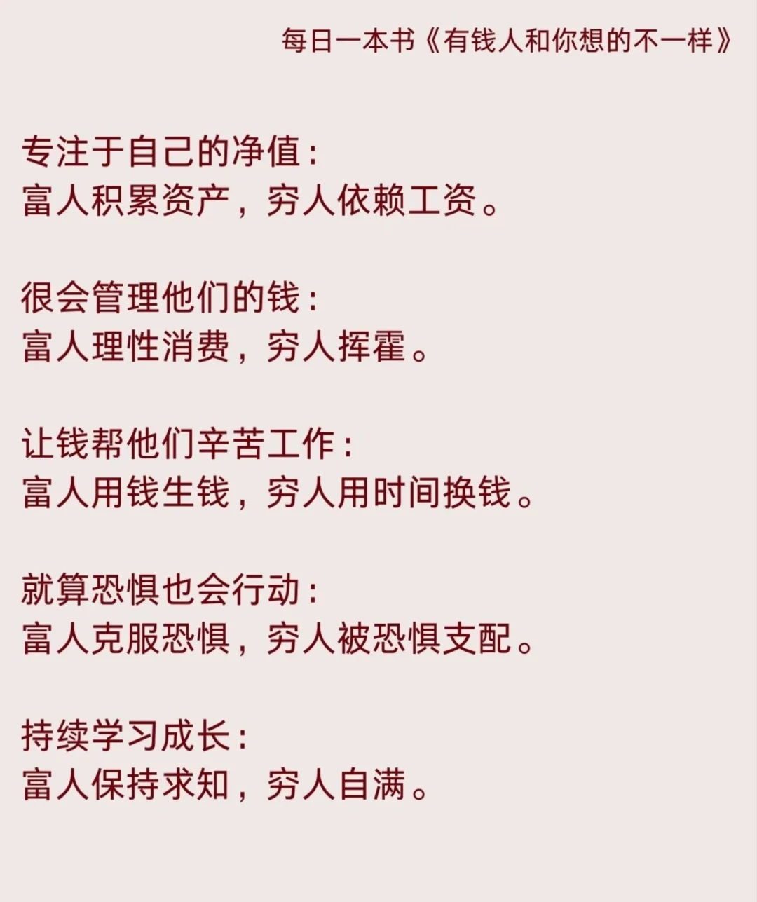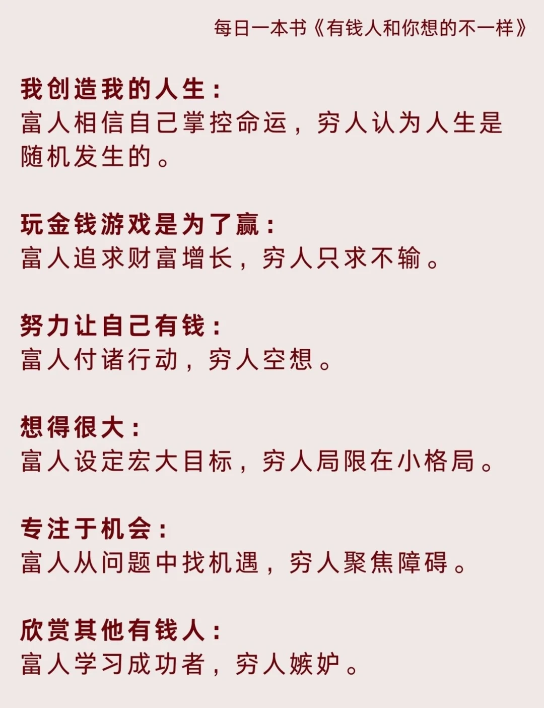 📖想起最近在看的书《有钱人和你想的不一样》,里面讲到:“成功的秘诀,不在于逃避问题,而在于你要成长,你要让自己大于一切问题。”