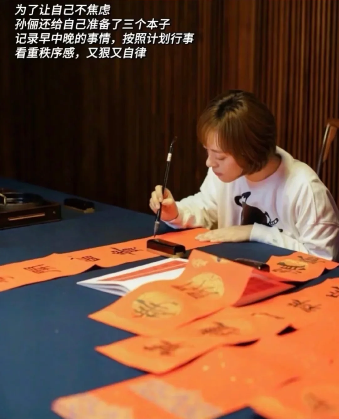 🔘关于自律,孙俪的答案是:为了抵抗内心焦虑,所以在早、中、晚写好记事本,只为保持心态平静。她很强调秩序感,自律者,多狠人。