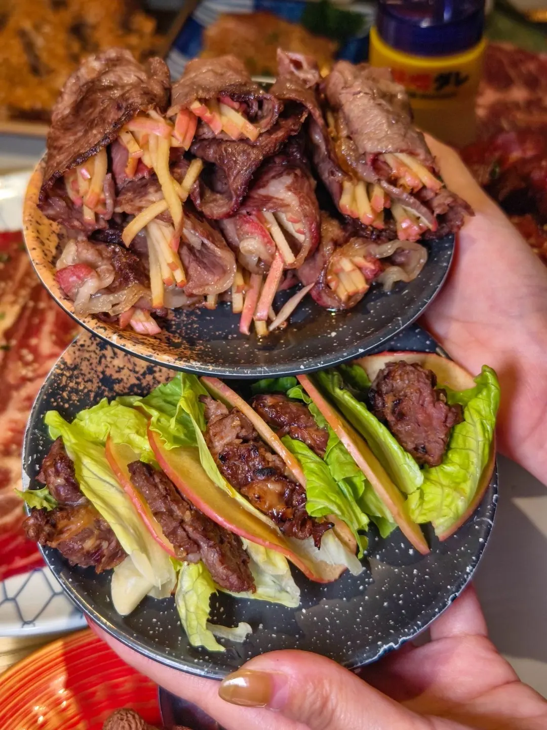 「苹果包肉」一上来就被抢光了,清甜不腻的口感连平时怕胖的闺蜜都吃了好几块🍎🥩她说这个好,苹果解腻能吃更多肉,逻辑满分哈哈。