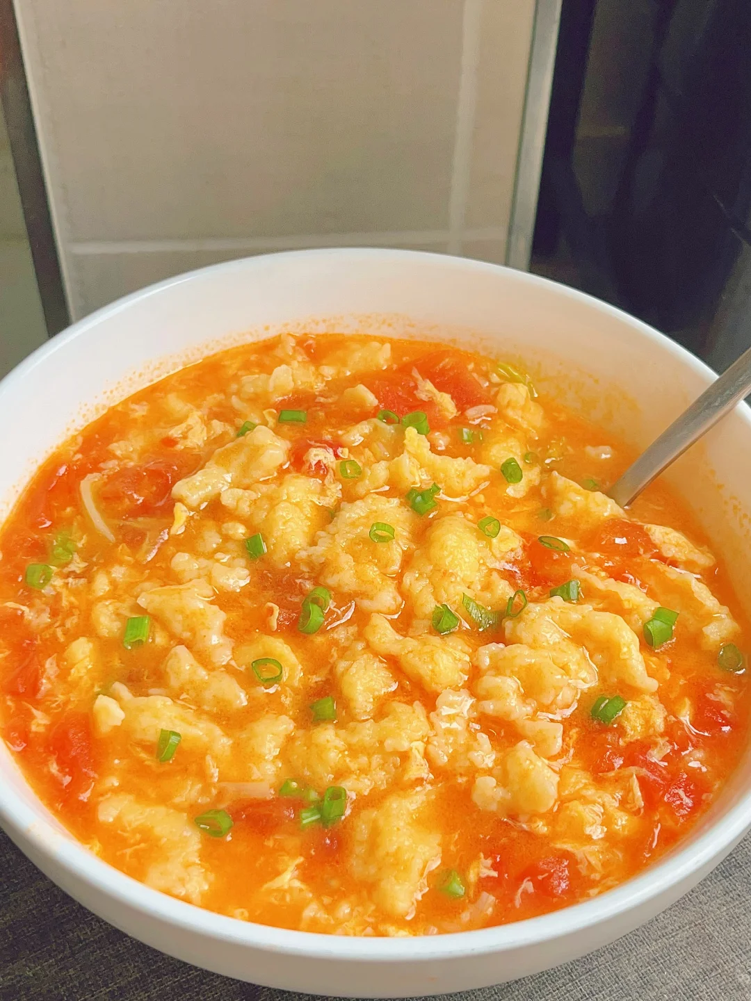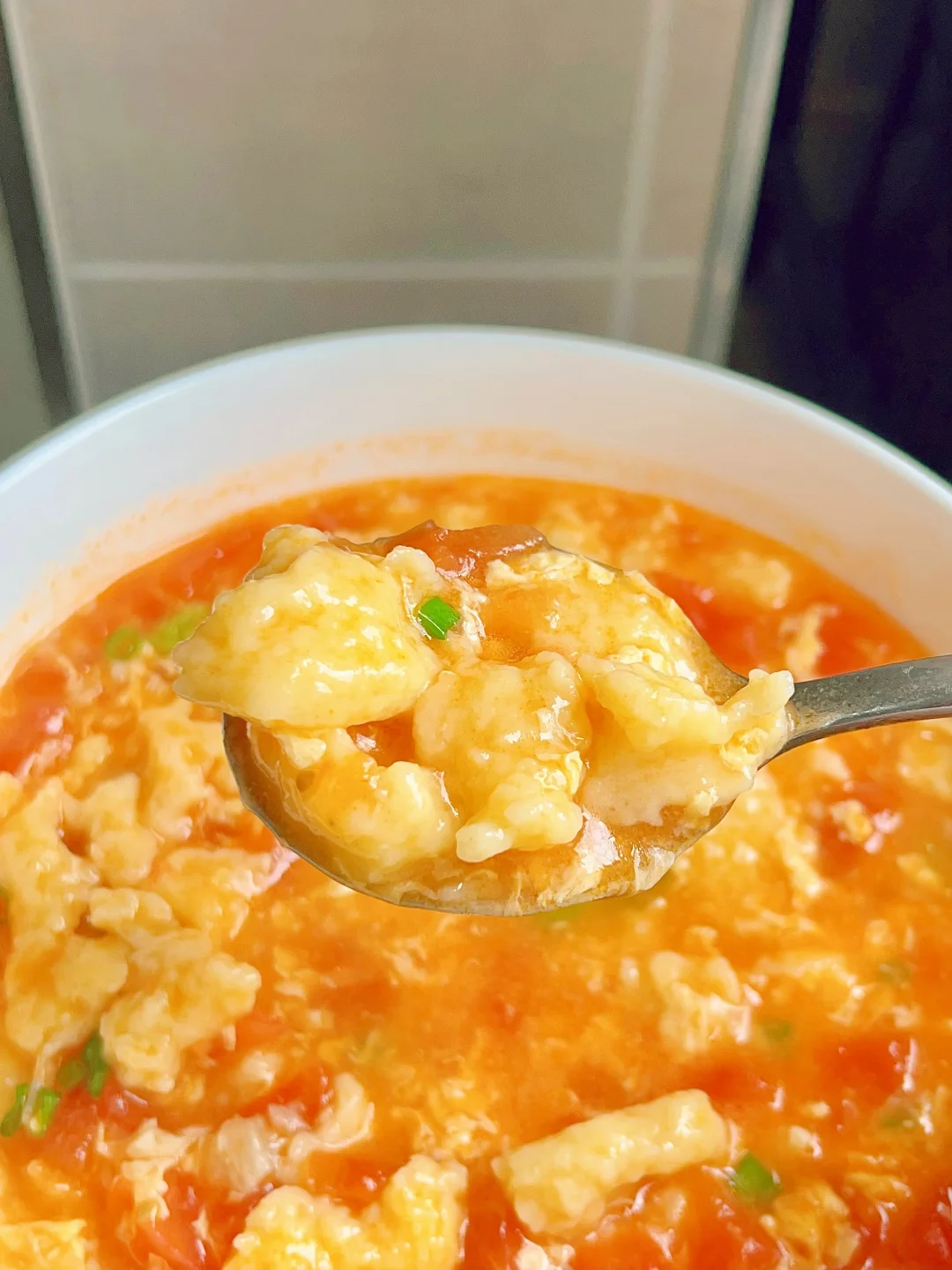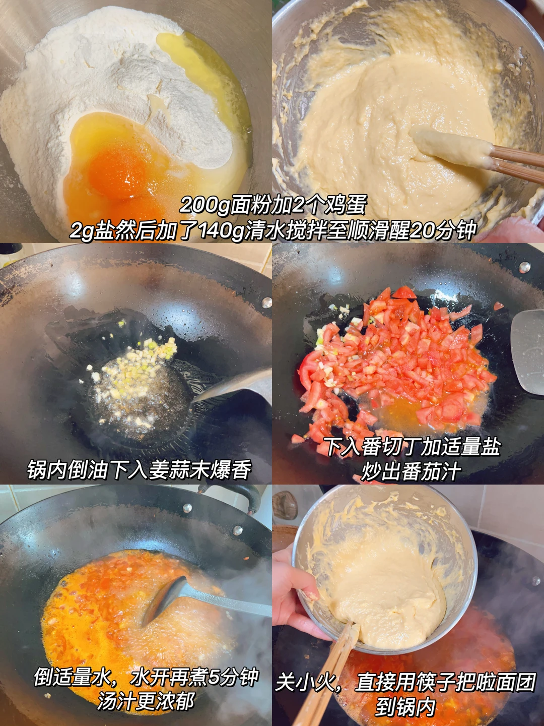 一定一定要试试这个疙瘩汤,酸甜开胃做法简单关键是疙瘩吃起来滑滑溜溜的,特别是大鱼大肉吃了之后来这么一碗绝了 [清单R]食材 200面粉、2个鸡蛋、2g盐、140g清水 [清单R]步骤 1⃣️200g面粉中加2g2个鸡蛋140g清水搅拌至面糊光滑状态醒20分钟 2⃣️锅内油热下入葱白末和蒜末爆香,倒入番切丁加适量盐炒出番茄汁然后再加适量水 3⃣️水开后中火可以再煮5分钟,把番茄的味道煮出来,汤汁会更浓郁更好喝,然后转小火把面糊用筷子直接把啦到锅内 4⃣️疙瘩煮2、3分钟后可以倒鸡蛋液,下入青菜煮熟即可